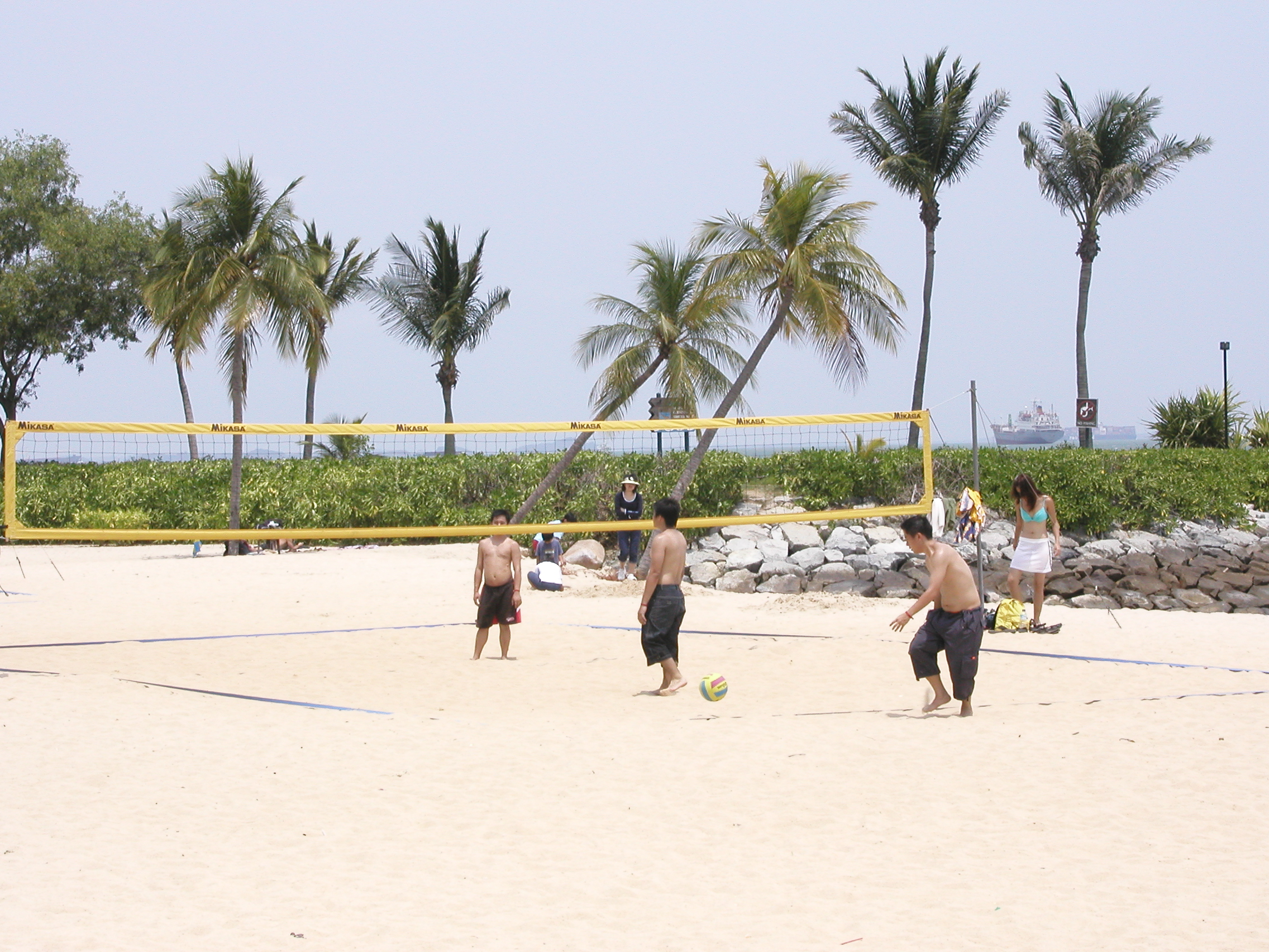 海に出るとそこは綺麗な砂浜です。シンガポール本島の海は汚いのですが、こちらは少しは綺麗に見えます。
