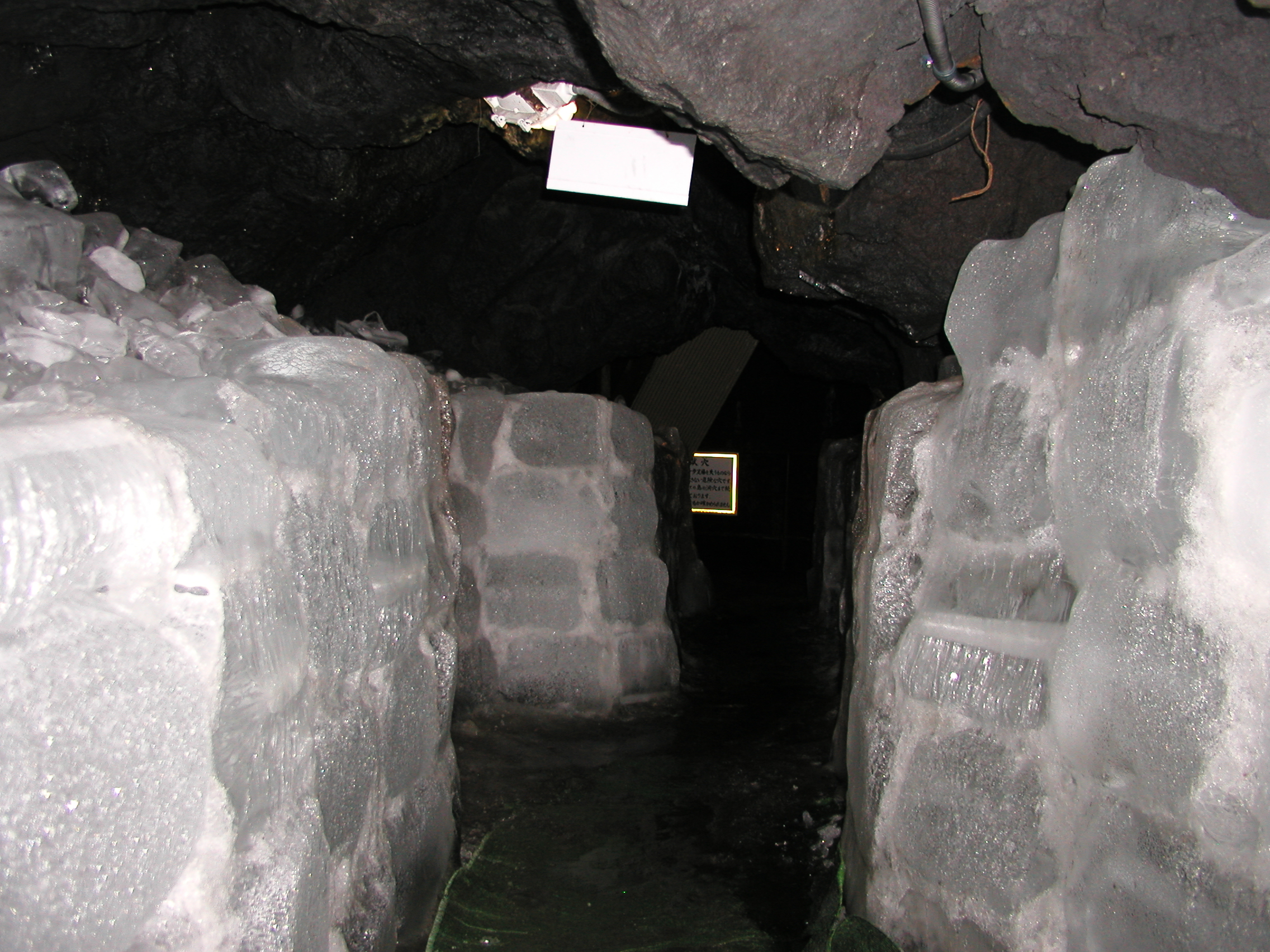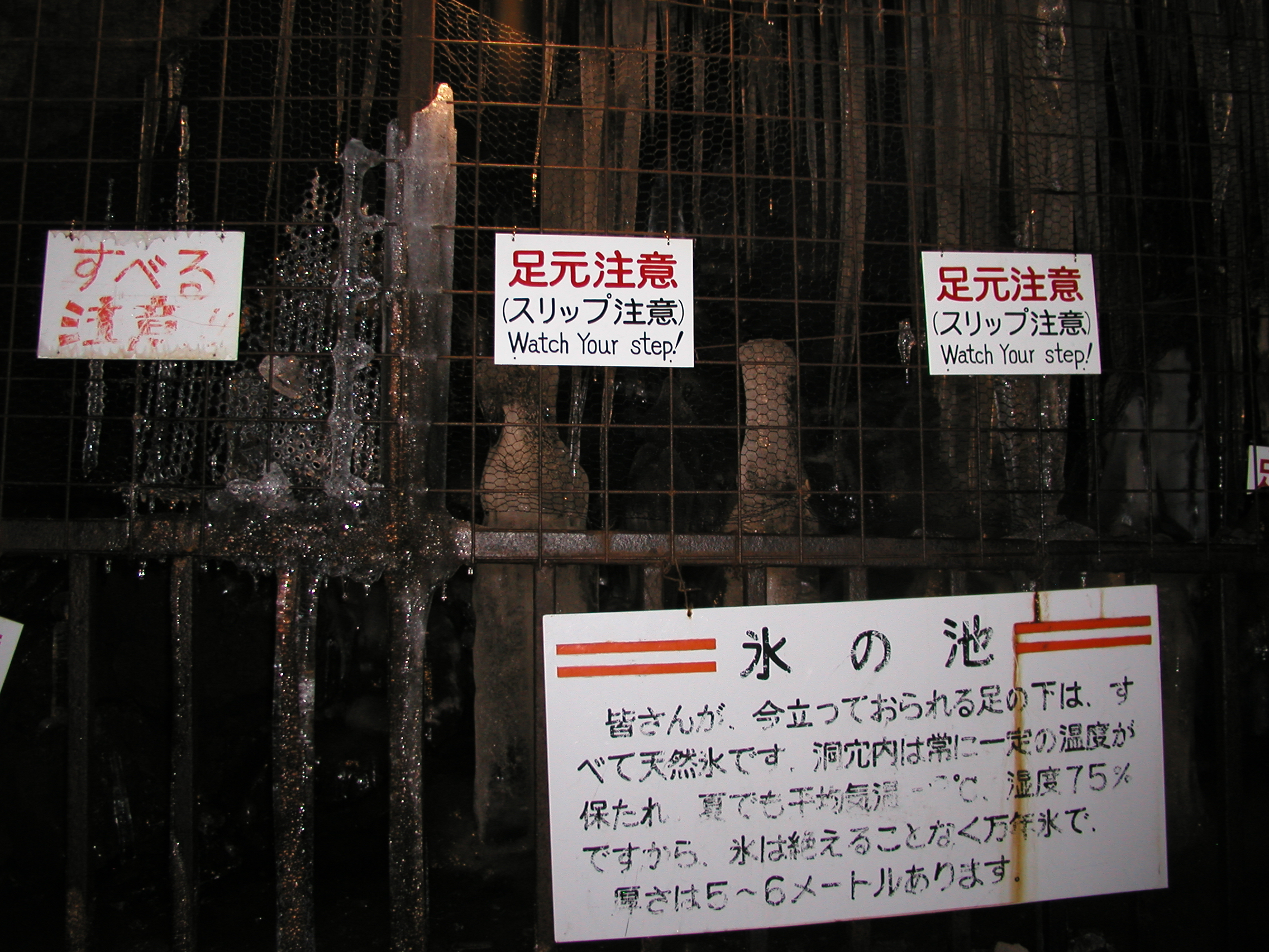 途中には、一度落ちたら絶対に帰ってこれない「地獄穴」、氷の壁が両側に立ち並ぶ箇所、氷の池、など見ごたえ抜群のところもあり、結構楽しめます。長さは153mもありますが、楽しみながら見ているとあっという間に出てしまいます。