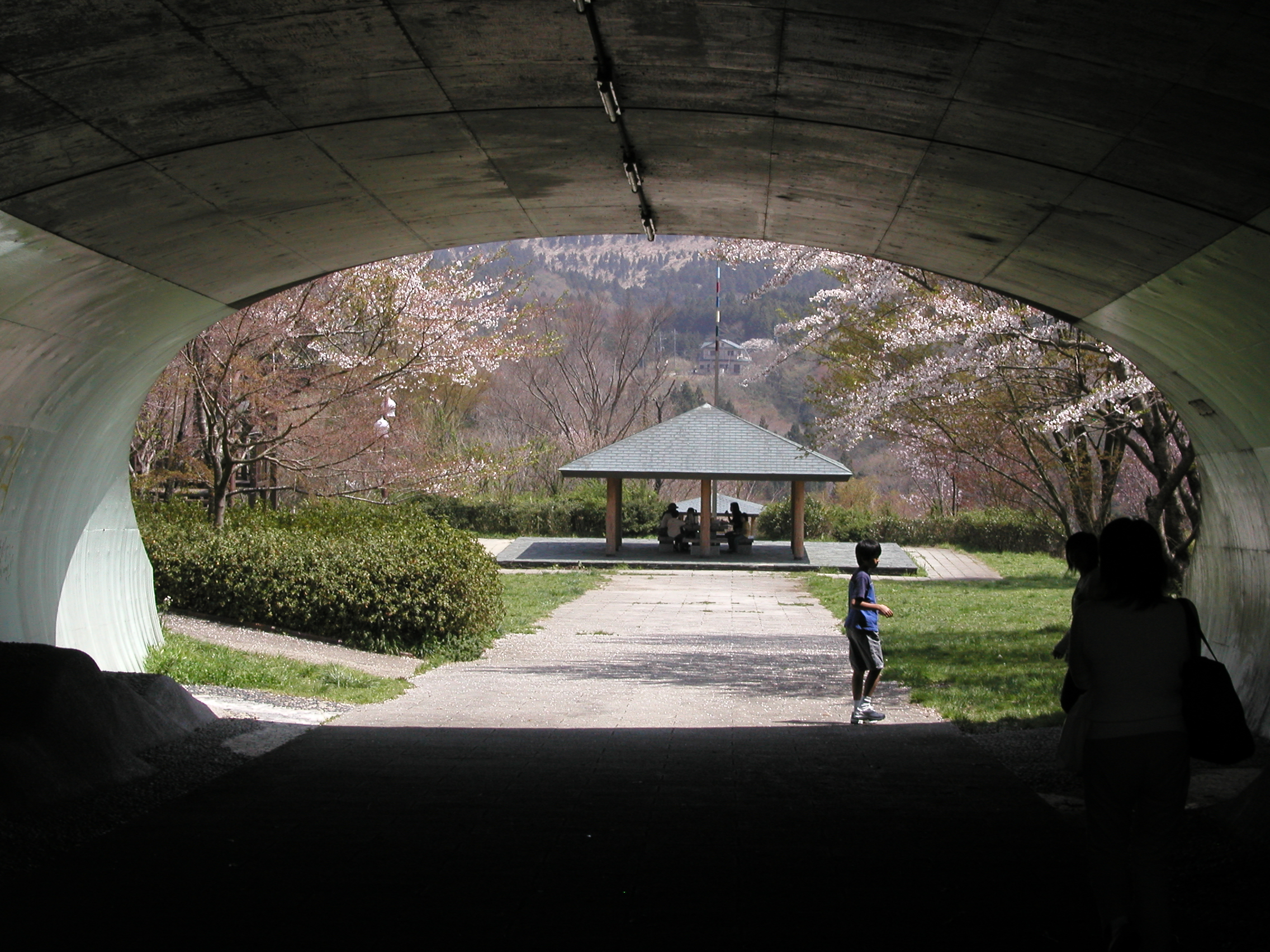 そこでまずは富士山をバックにセルフタイマーで記念撮影。ここには小さなトンネルを抜けた所にちょっとした公園もあるので、そこで一休みし、また出発です。ほどなく御殿場ICに到着しました。