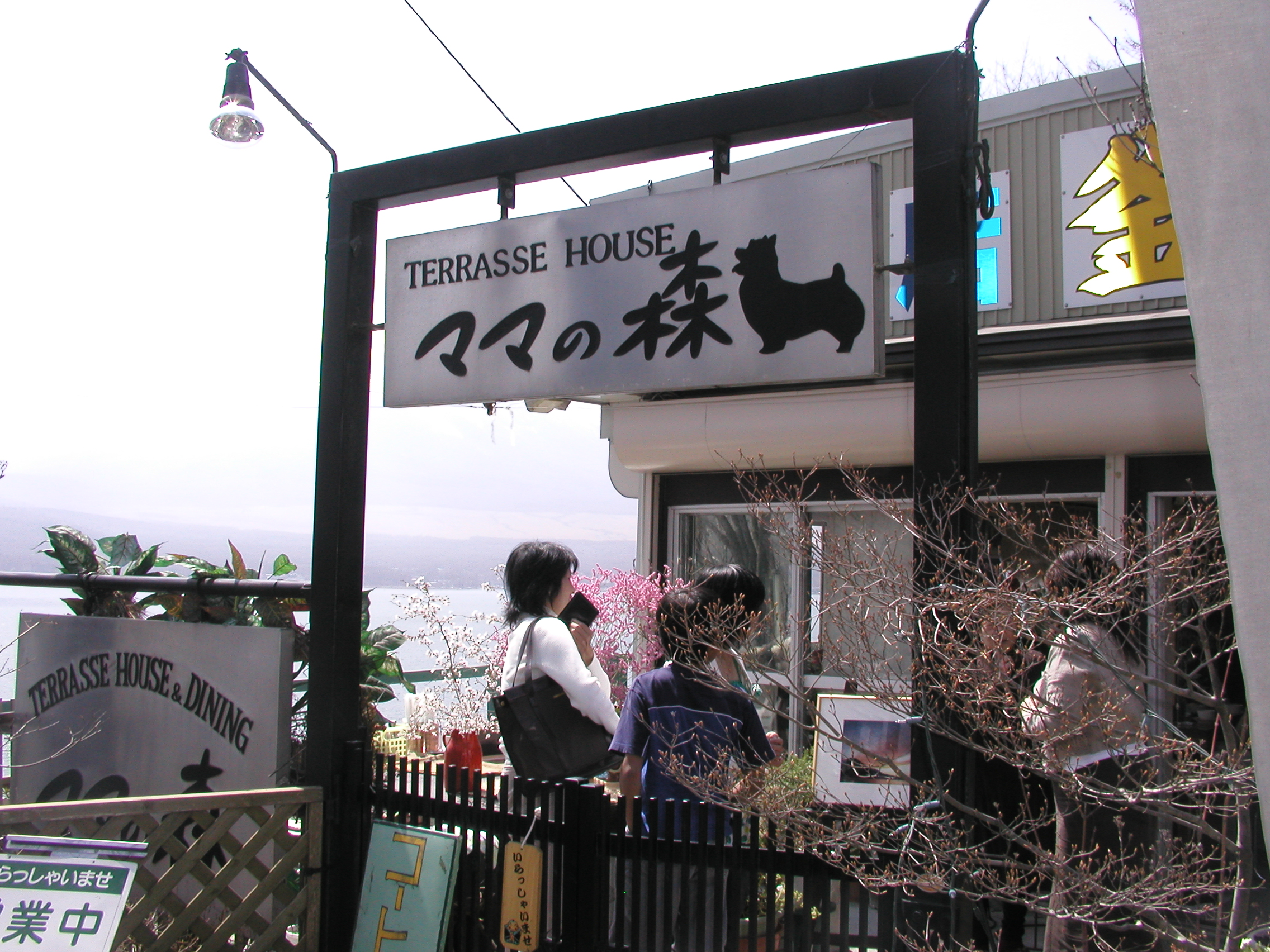 いざその場所へ行ってみると、高台の見晴台らしきところまでは行くのですが肝心の見晴台らしきものは見当たりません。何度かそのあたりを行ったりきたりしましたがありません。しかしちょうど一番高い所にしゃれたお店があり、そこから見るのが一番良さそうなので、その店に入っていきました。その店は「TERRASSE HOUSE ママの森」といい、もしかしたらここがママの森そのものかもしれません。