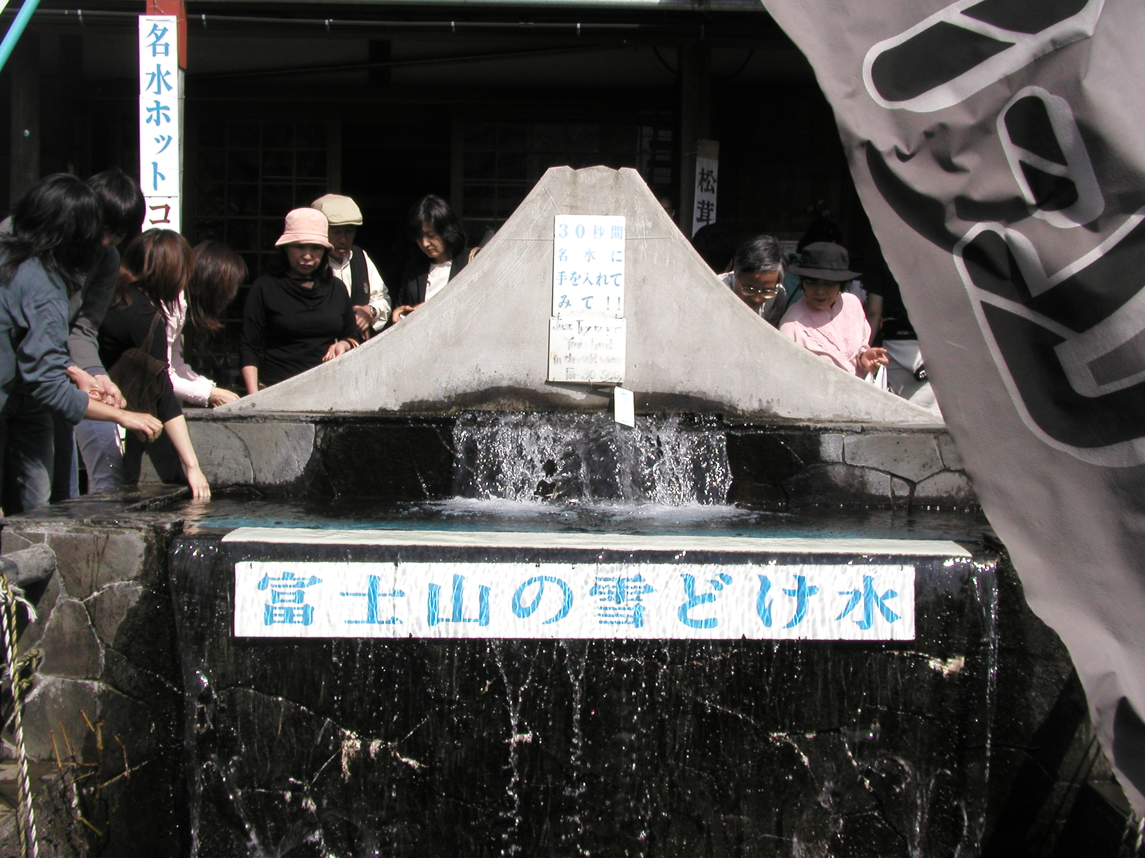 そのエリアの一角には「富士山の雪どけ水」に触れられるコーナーもありそこで手を流してみましたが、とても冷たい水でした。