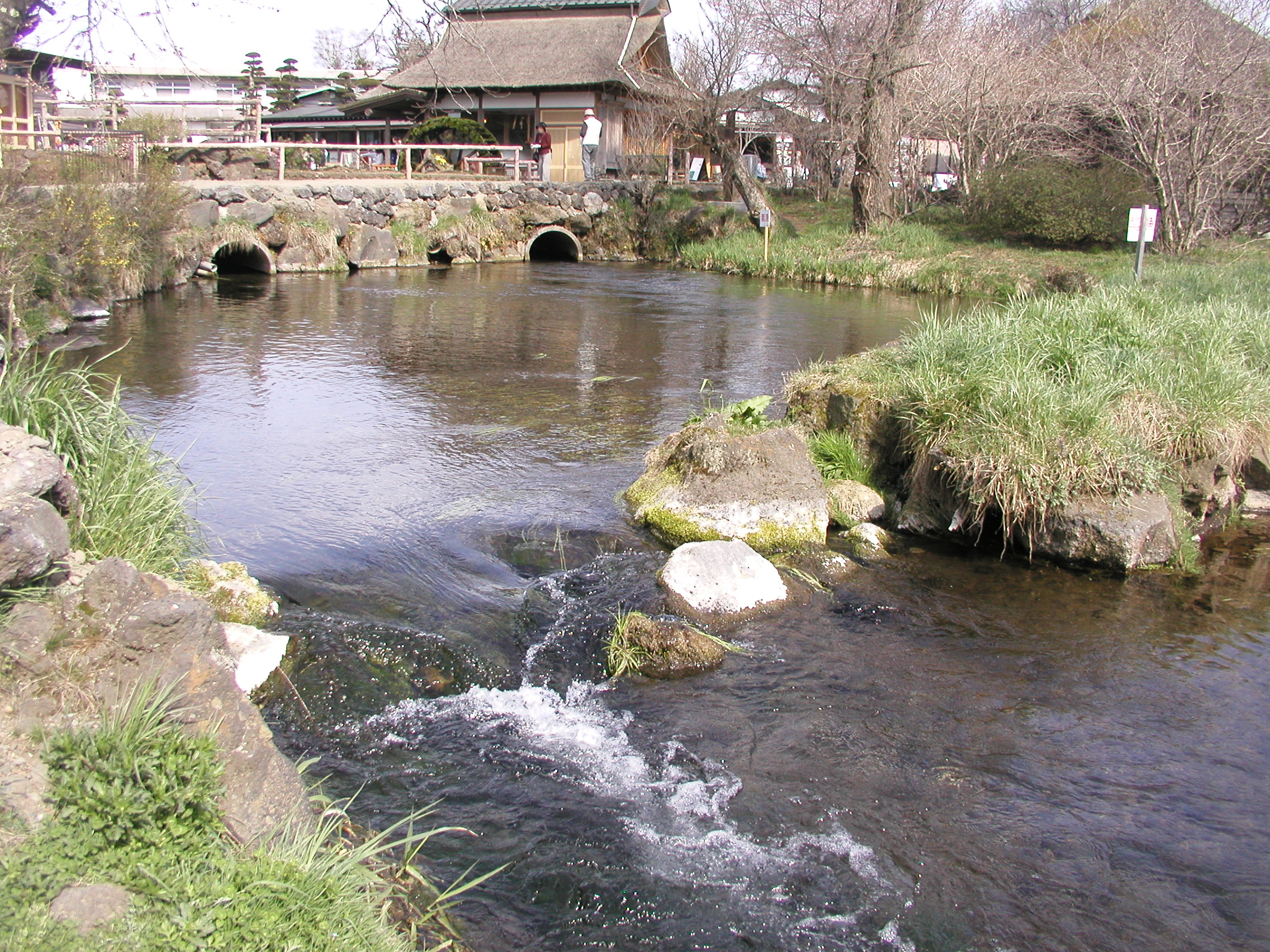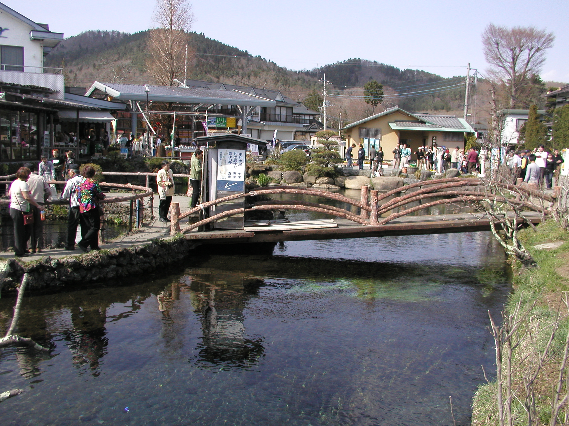 忍野八海とは透明度の高い池(沼?)が8つあることからこのような名前がついています。富士の湧き水なので実に透明度が高く、ため息が出るくらいで、昭和60年(1985年)には「全国名水100選」に選ばれているとのことです。近くには多くのお土産屋さんがあり、その店で何か買うと駐車料金無料というのがほとんどですので、その中の1件に車を止めて歩いていきます。