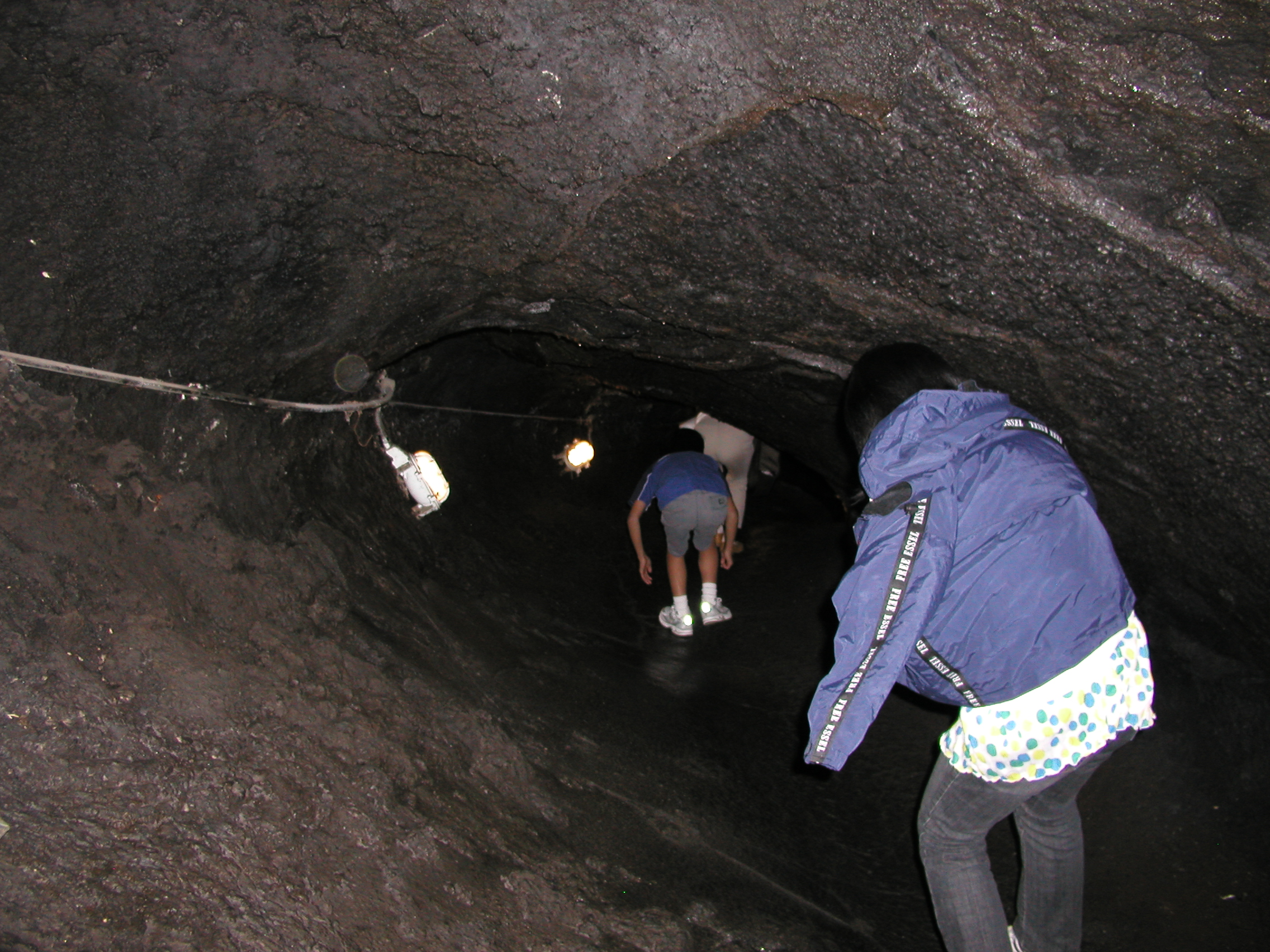入る前から周辺は非常に涼しく、中はとてもひんやりしますので探検気分満点です。ちょっとだけ階段を降りていって、すぐに洞窟そのものの中を歩くことになりますが、ところどころ天井が非常に低い場所があるので、注意しないと頭をゴツン!とぶつけて、非常に痛い思いをすることになります。でもこういう狭い方がいかにも自然の洞窟らしくて、気分は最高。足元も滑りやすいので注意しながら進んでいきます。