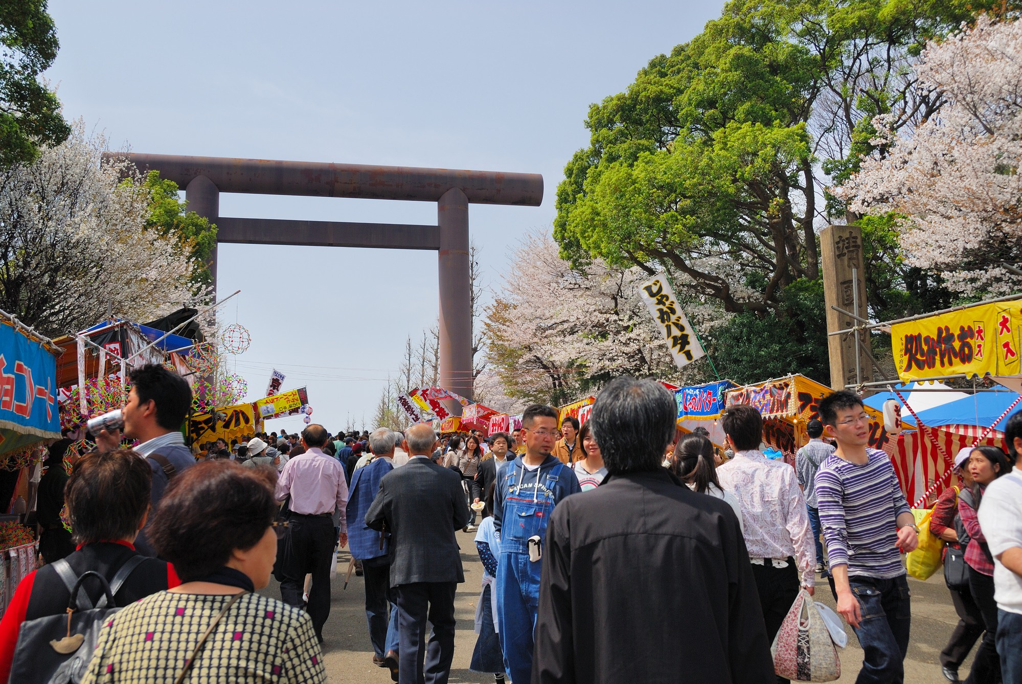 靖国神社は初めての訪問ですが,両側に屋台がたくさん並んでおり,境内はものすごい人ごみでした。その人をかきわけるようにして進んでいきます。