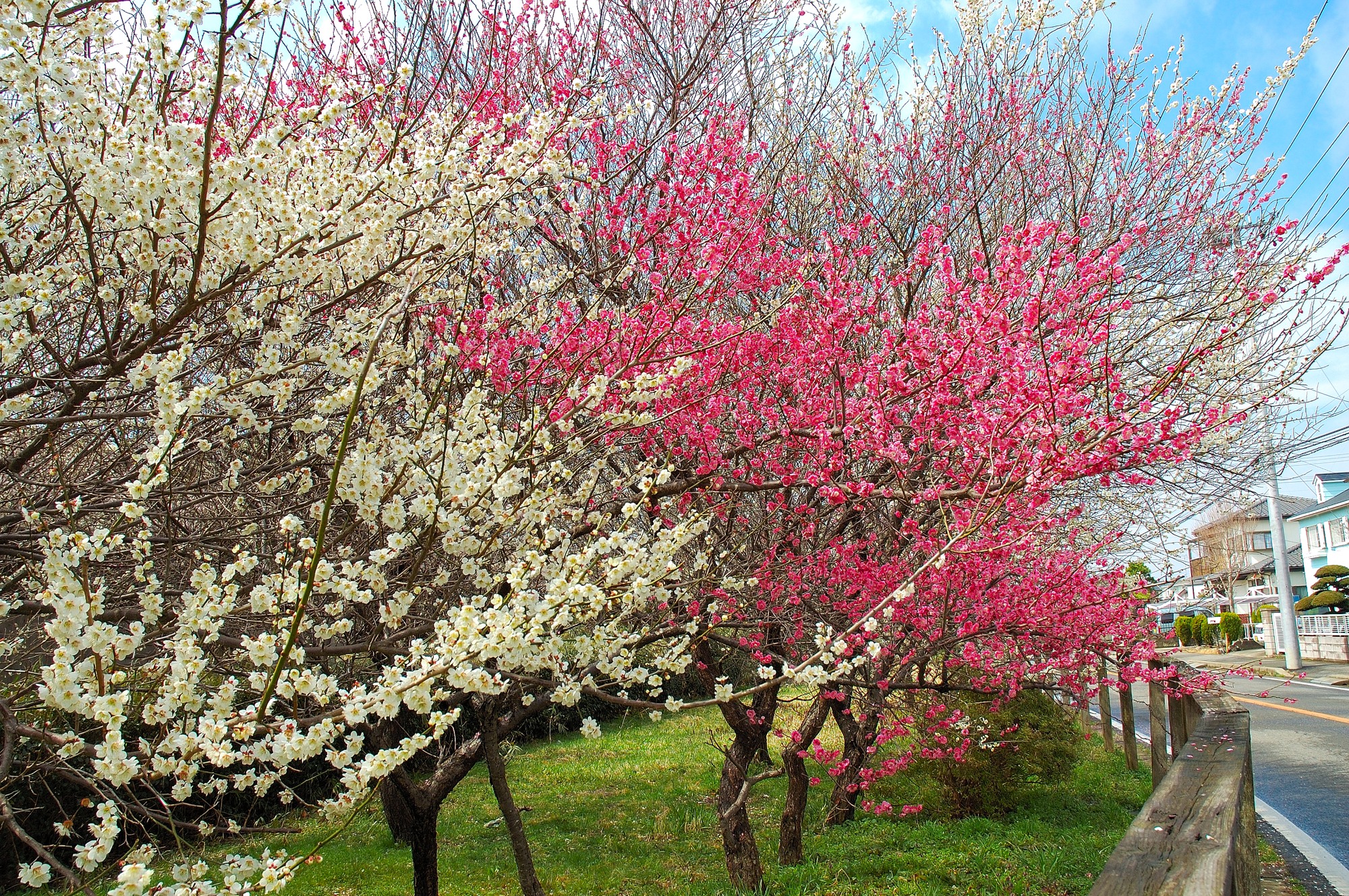 我が家のあたりは成田市内ですが三里塚というところで、近くには御料牧場跡もある位、近所には牧場が多くあります。うちの団地の中にも昔ながらの牧場が残っており、そこに梅が咲いていたわけです。あまりに美しいので、思わず自宅からカメラを持ち出して撮影してきました。白梅と紅梅とあり、そのコントラストが見事でした。