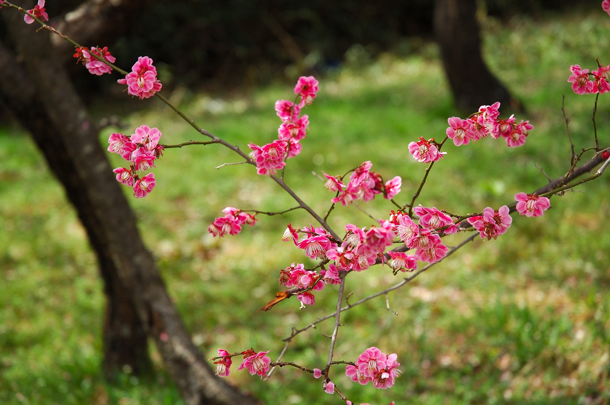 何と! 自宅のすぐ近くの牧場に梅が見事に咲いているではありませんか!
