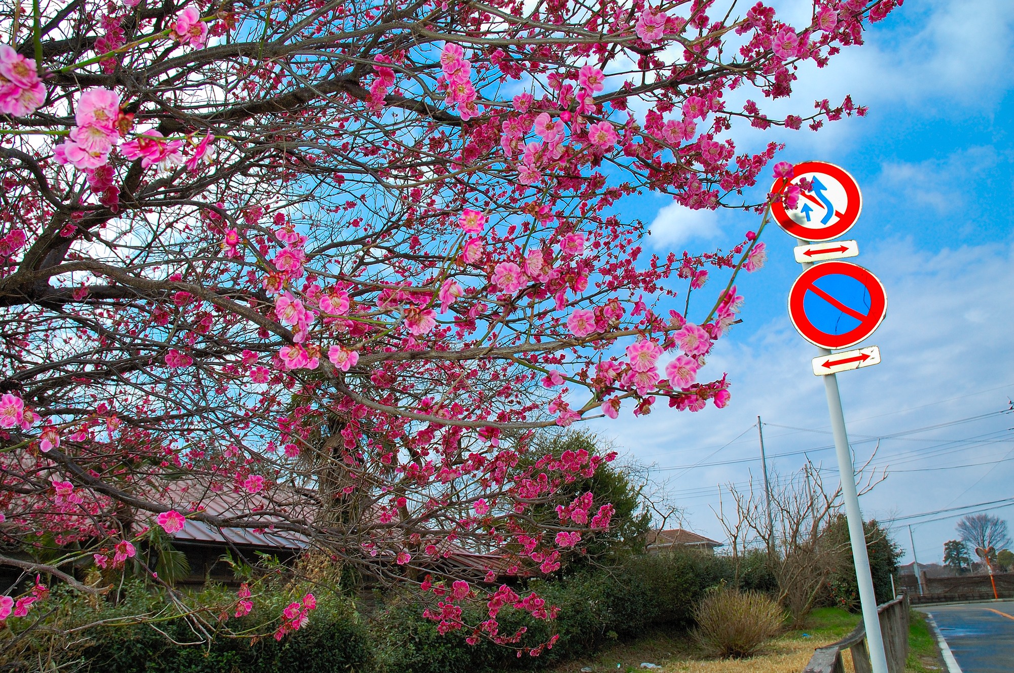 いつもは水戸の偕楽園の梅の開花は2月末頃のようでしたのでその頃に見に行こうと思っていましたが、WEBで調べたら開花はまだとのこと。毎週チェックしていましたがなかなか咲かず、本日ようやく満開となっていました。では今度見に行こうか、と思いながら自宅近くを車で走っていた時です。