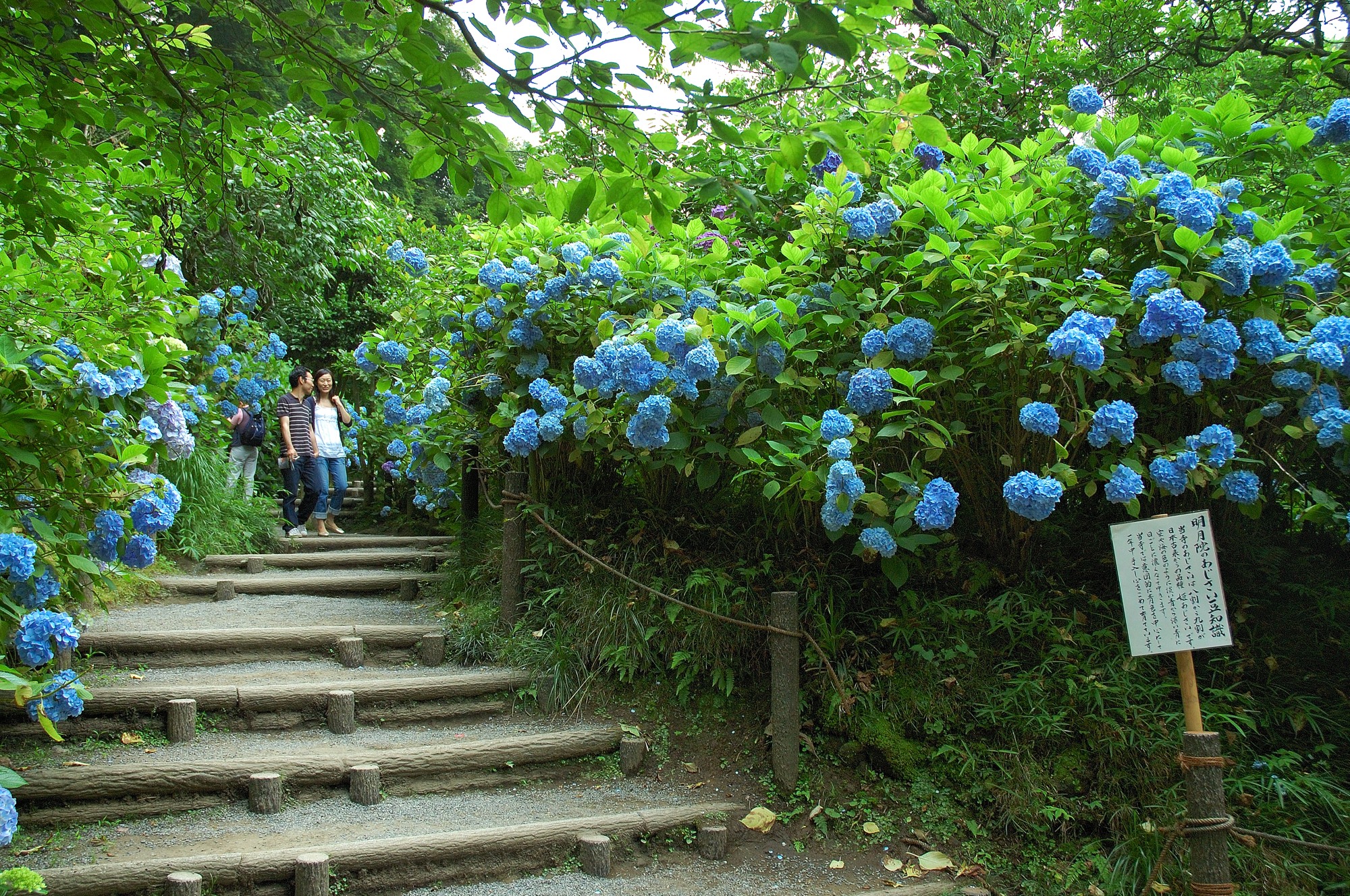 お次は近くの長谷寺に向かいます。ここも明月院と並んであじさいで有名なお寺で、境内には同様に遊歩道があります。