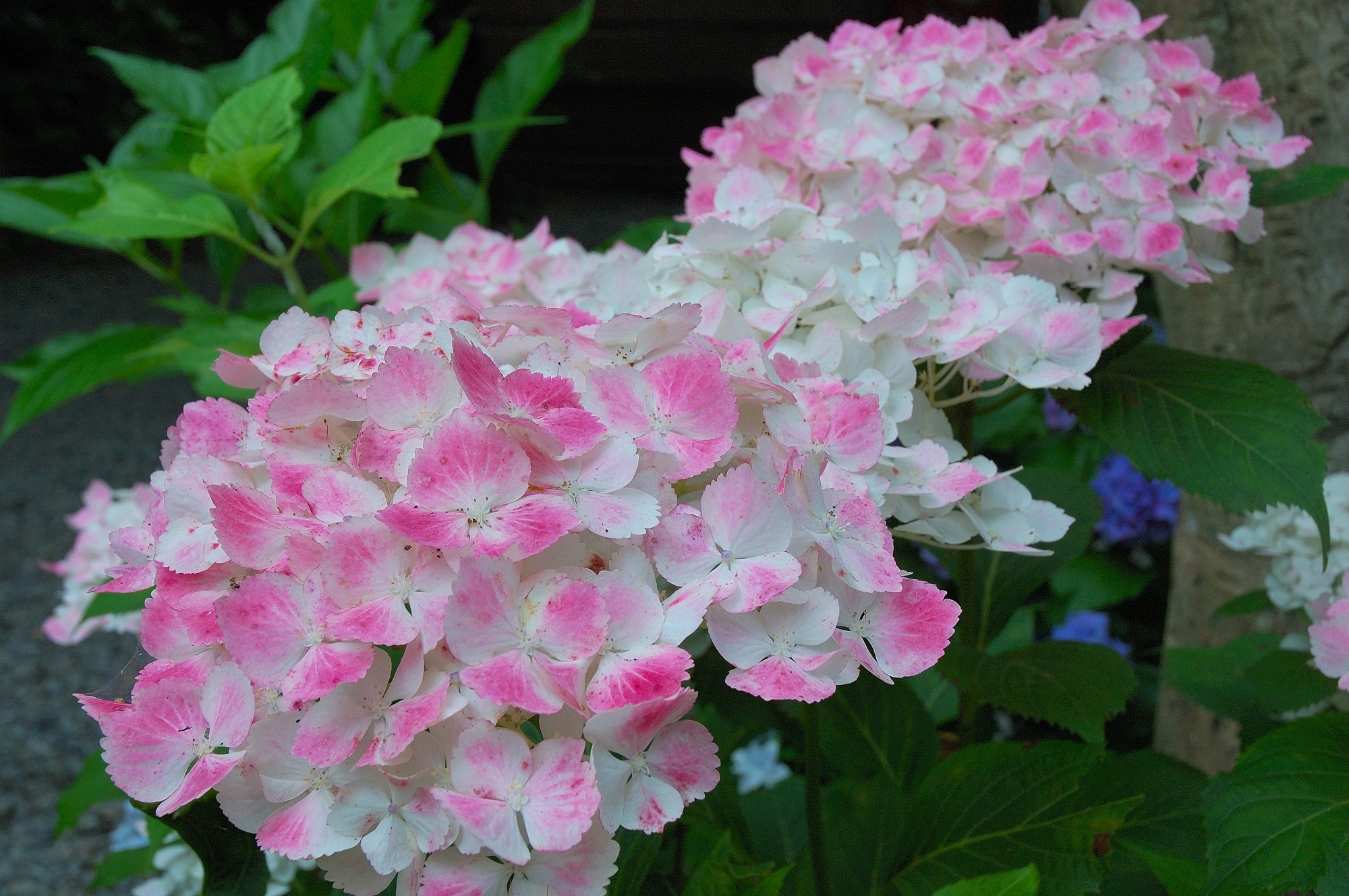ここにあるのは姫あじさいに似ていますが、色は青だけでなくピンクもあるので、どうやら西洋あじさいのようです。しかし姫あじさいに負けないくらい綺麗です。
