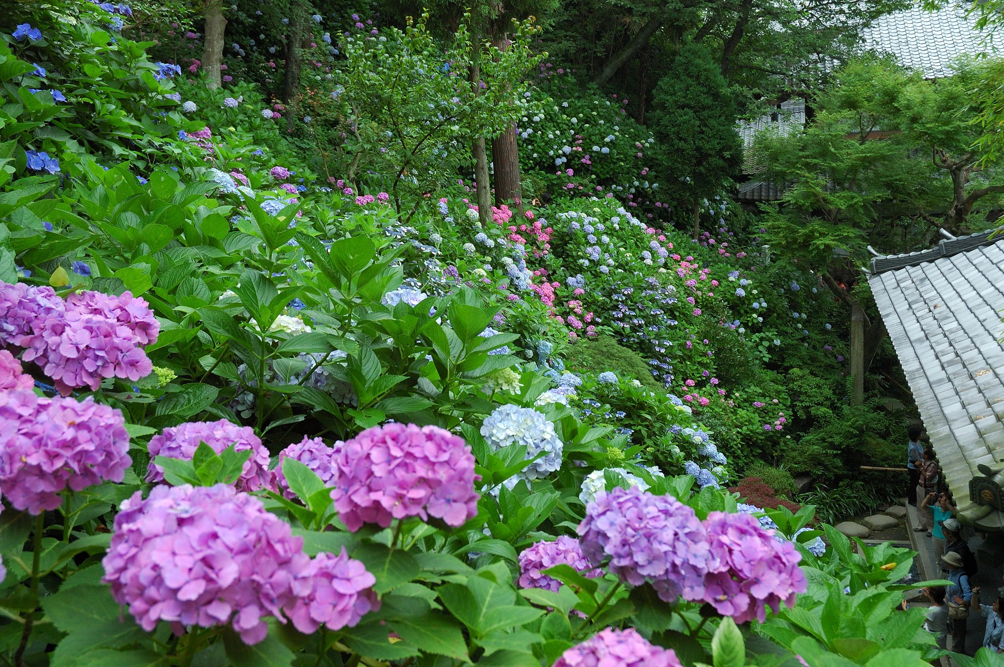 昨年の秋に見に行った鎌倉の紅葉はとても美しかったのですが、鎌倉は関東エリアではあじさいでもまた有名です。よってピークの今、今度はあじさいを見に行くことにしました。梅雨の真っ最中なので天候が心配でしたが、当日は朝から曇ってはいたものの何とか天気は持ちそうです。同行は昨年、鎌倉の紅葉を一緒に見に行った、同じ会社のやはりカメラが趣味の方です。混まないうちに、ということで朝9時に待ち合わせをしました。車で向かう途中、横浜あたりでポツポツと小雨がちらつきましたが、鎌倉に着いたら曇り空ではありますが何とか雨にはなっておらず一安心です。