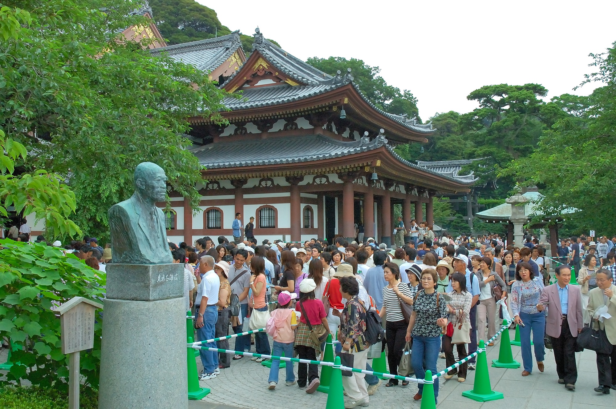 尚、この近くには、このあと立ち寄りましたが、やはりあじさいで有名な長谷寺もありますので、ここでは多くの人がおりて歩いていました。ほどなく高徳院に到着しましたので、入場料を払って中に入ります。