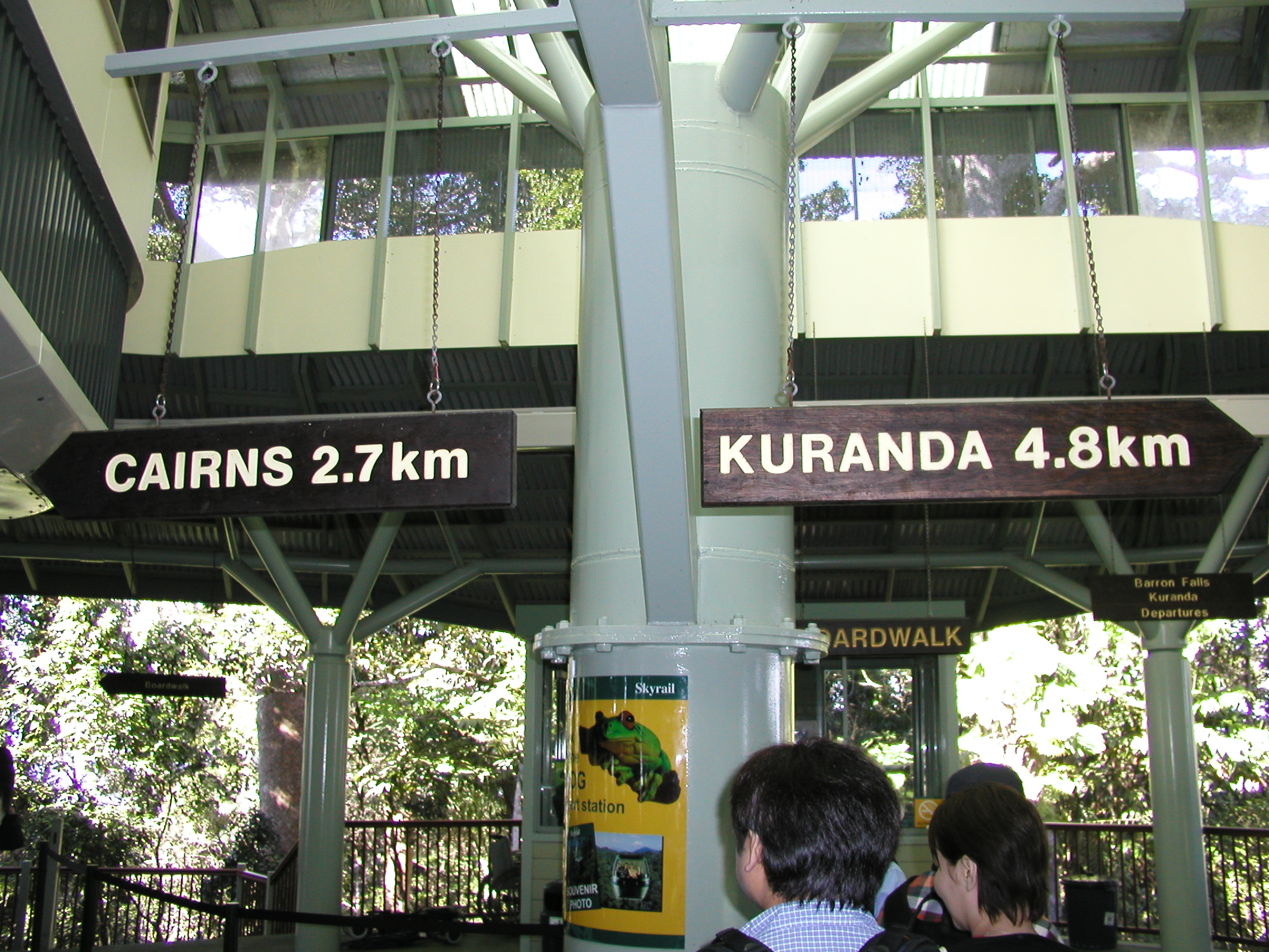 このロープウエイは終点のキュランダ駅までの間に途中2箇所の中継駅があり、そこで一度降りて付近を散策出来るようになっています。最初の中継駅までは登ってゆき、そこから以降は水平移動となり、延々と続く熱帯雨林の風景を楽しむことが出来ます。