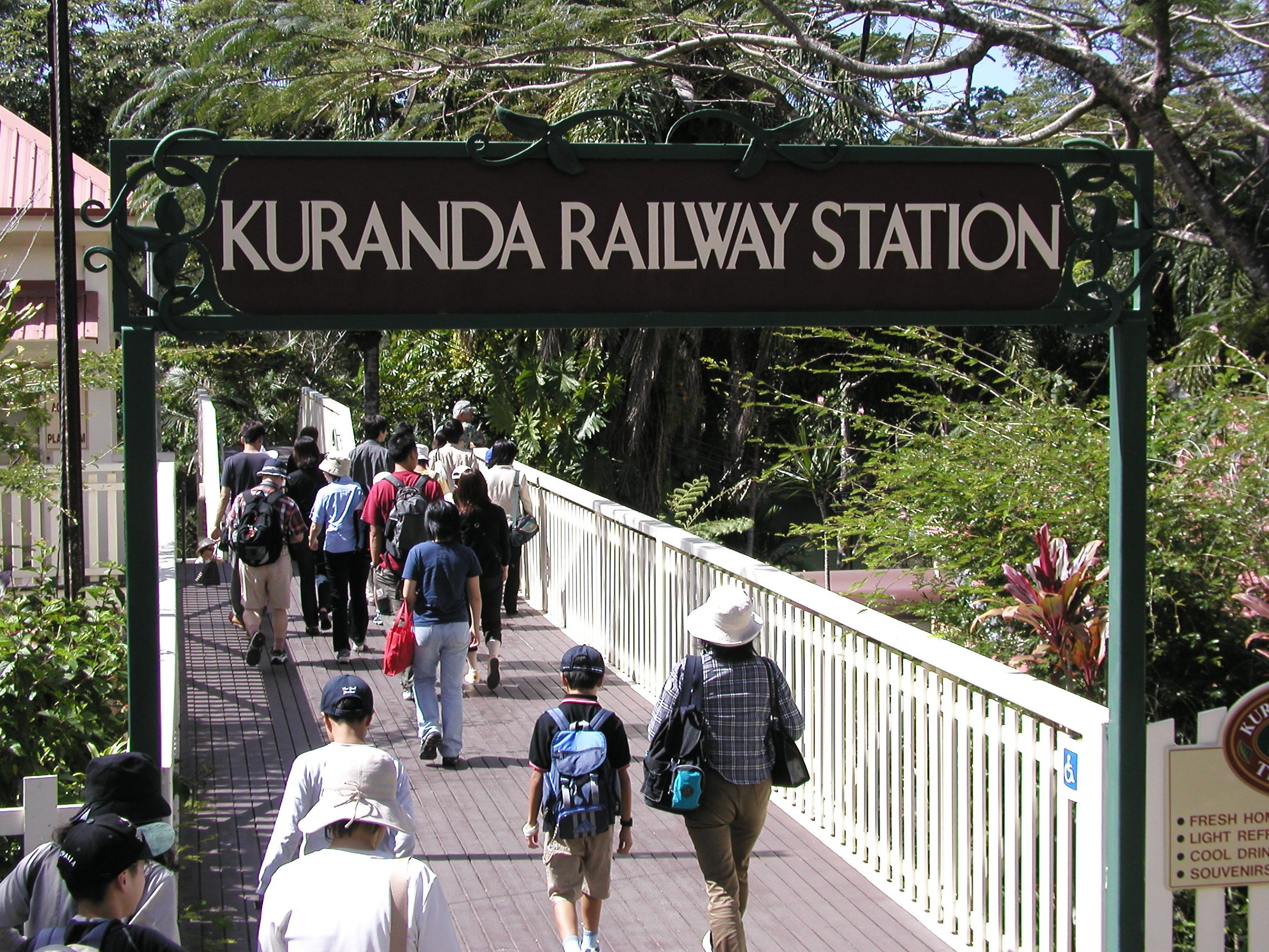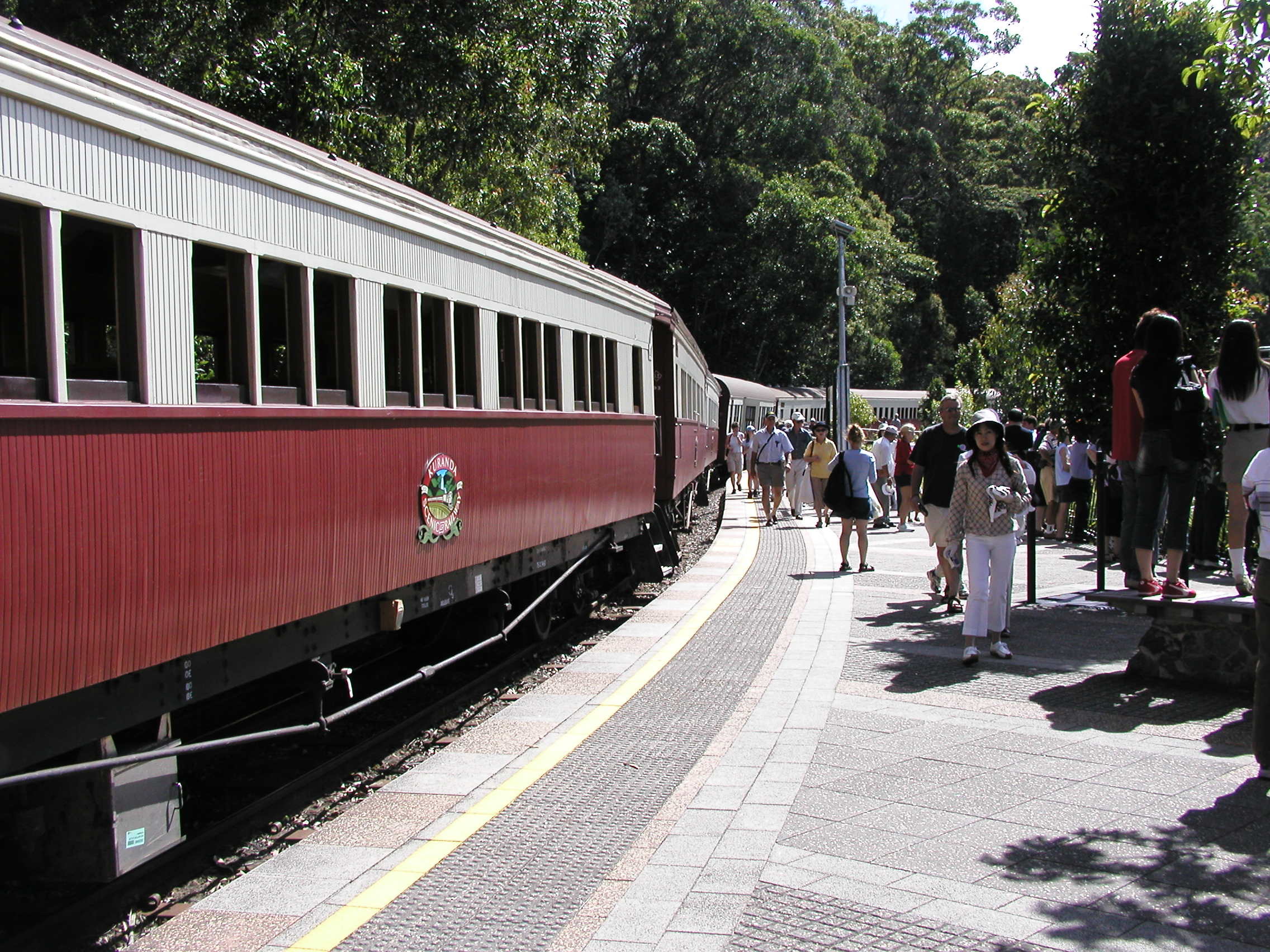 途中の散策も含めて1時間以上は乗っていたでしょうか。ようやく終点のキュランダ駅に到着です。