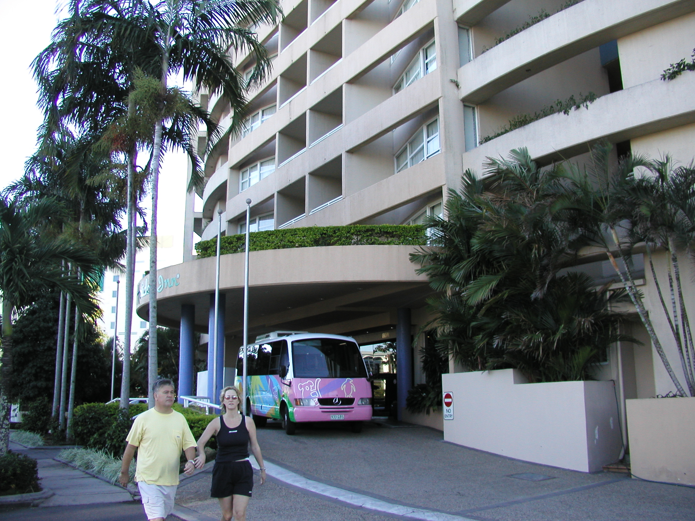 これで準備は完了です。まずは本日のキュランダ観光のバスが朝の8時にホテルに迎えに来るので、それまでロビーで一休みします。しかし夜行便で到着して間もないので眠くて仕方ありません。皆でソファーでほんの少し仮眠を取りました。