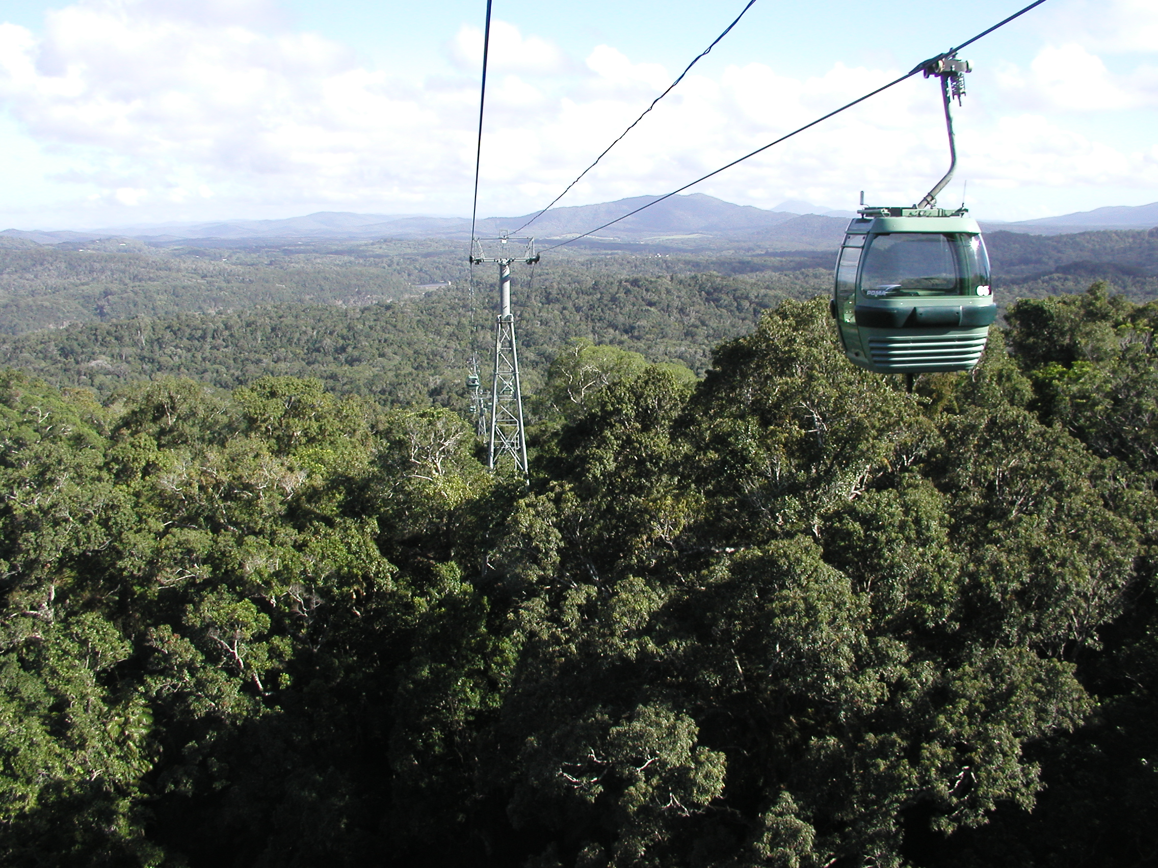 スカイレール(Sky Rail)とはキュランダの熱帯雨林地帯の上を通る長さ7km以上もある世界一長いロープウエイです。