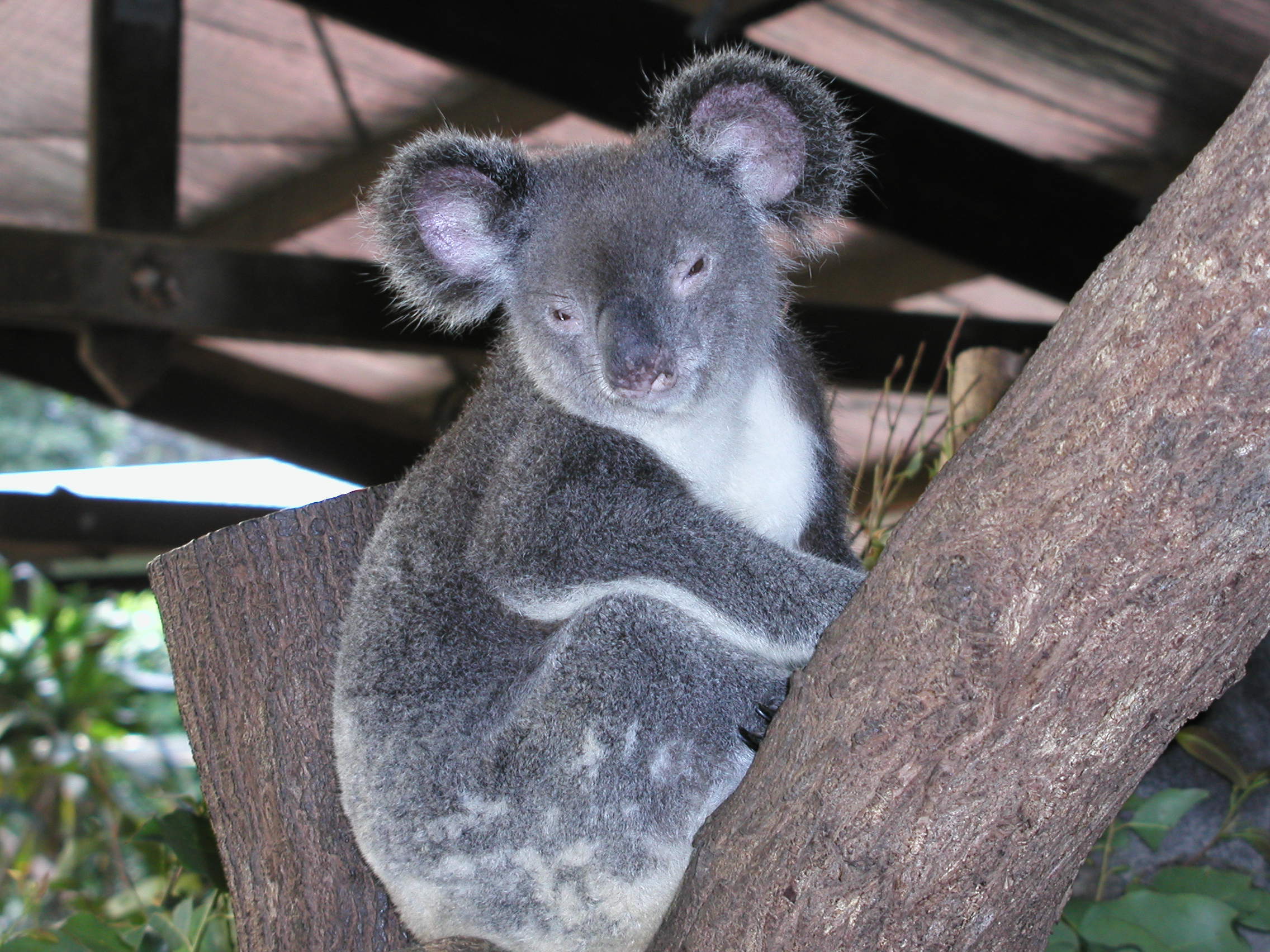 薄暗い小屋の中に入ると、いたいた、コアラが数匹木に抱き付いています。これも1メートルくらい前に見ることが出来ますが、じっとしていてなかなか動きません。コアラは1日に18時間は寝ているということなのできっと寝ているのでしょう。コアラをこんなに間近で見るのも初めてなので感動です。
