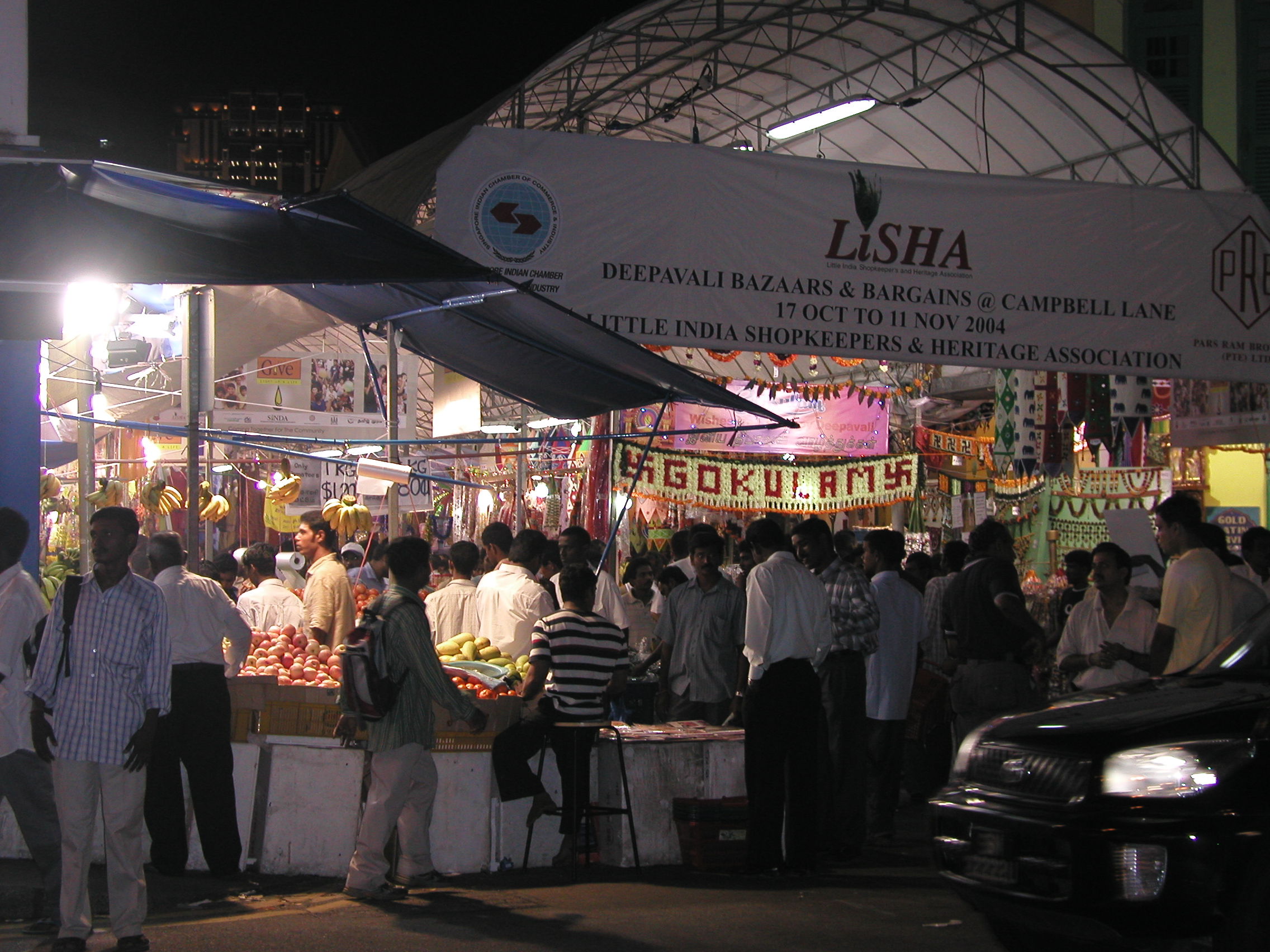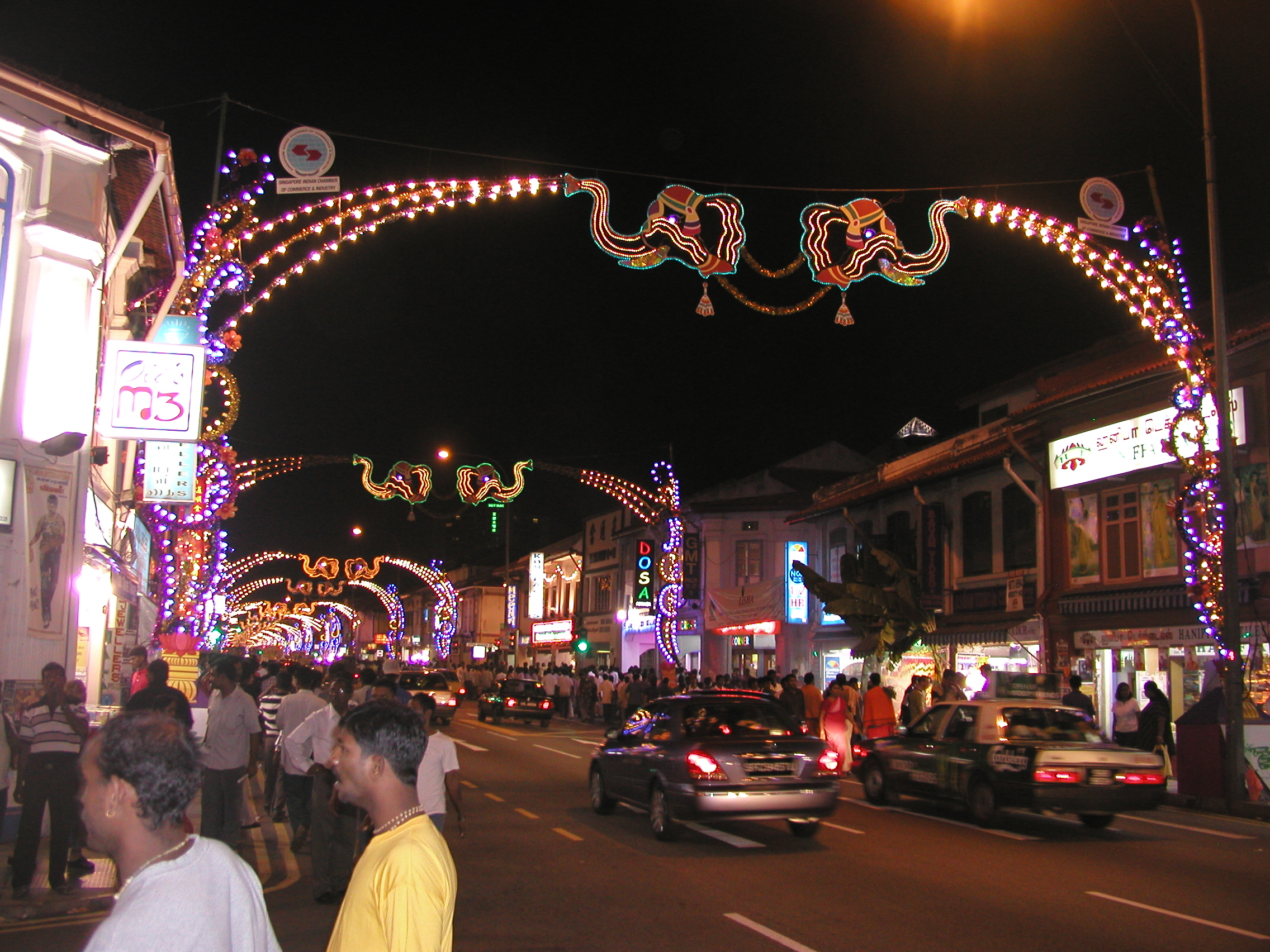 今回、2004年11月11日のインド系のお祭りであるDeepavali(ディーパ・バリ)を控え、リトル・インディアのメインストリートである Serangoon Road でライトアップをしているとの話を聞きつけ、日曜日の夜、家族で見に行くこととしました。