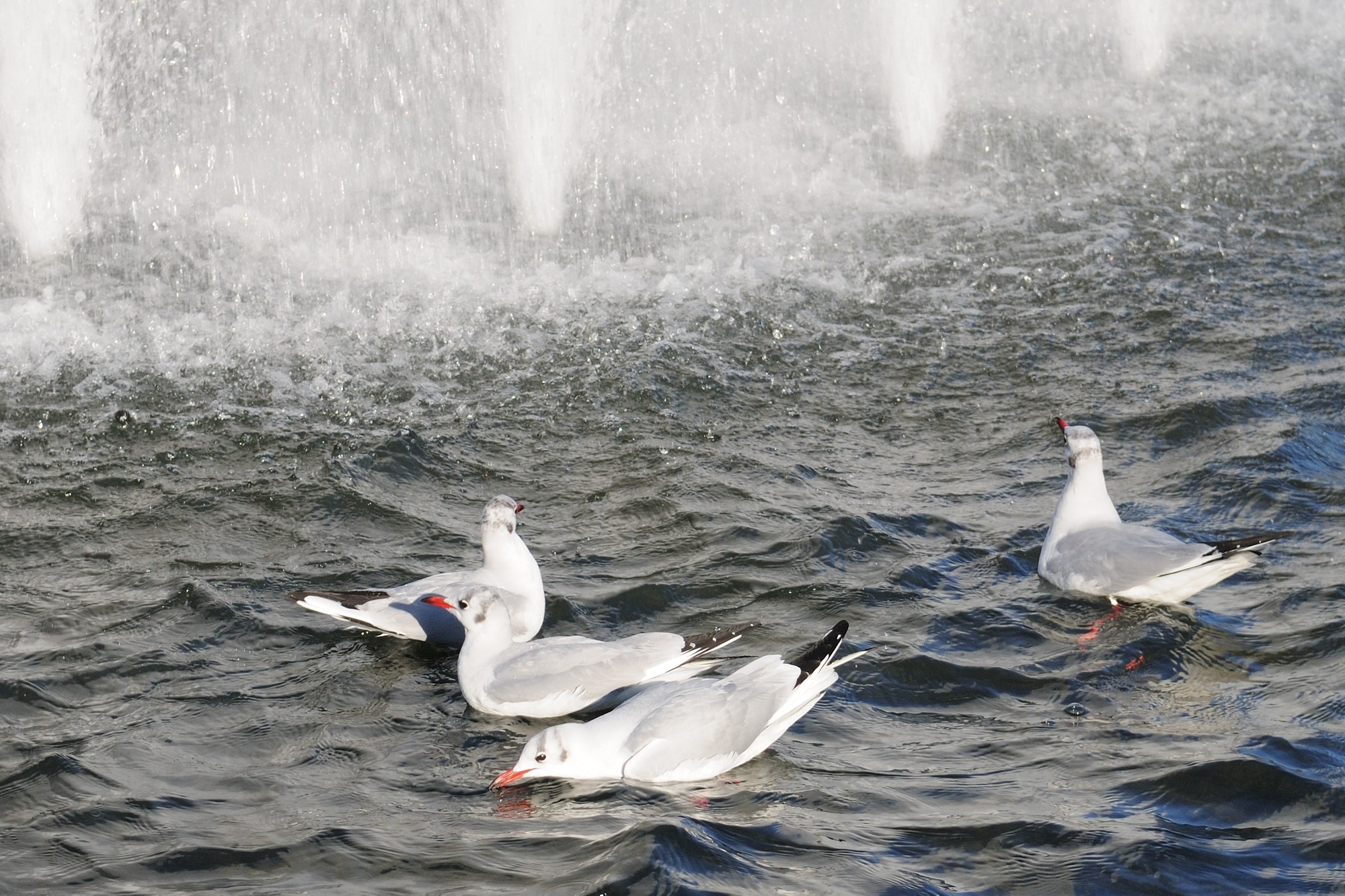 良く見たら噴水の池には,やはりカモメが数羽泳いでいました。この寒いのに,水の上が気持ちいいのでしょうか。これまた結構かわいいものでした。
