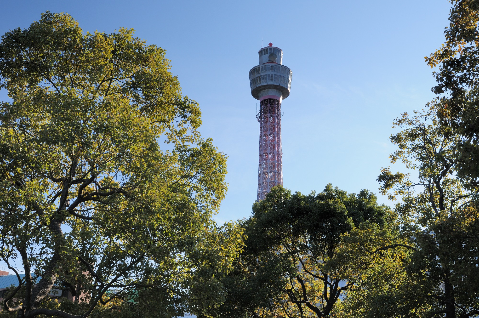 そこで陸地の方を振り返ると,木々の間にマリンタワーが見えます。このマリンタワーは現在改修中で2006年より中には入れません。本当はここからの眺望が最高に素晴らしいのですが。ちなみに新しいマリンタワーは2009年春にはオープンになるようですので,今から楽しみです。