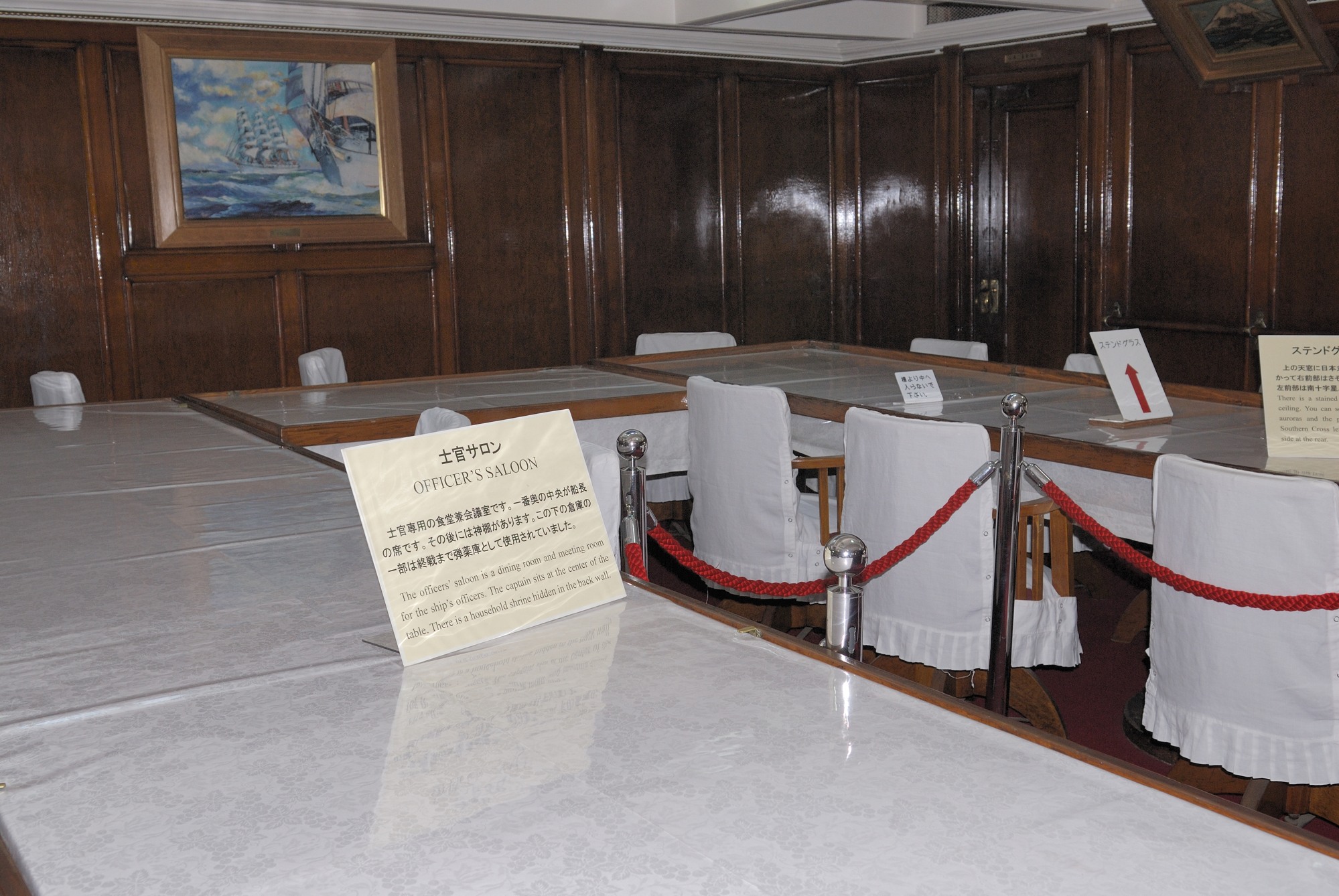 下に下りると巨大なエンジンが見えます。これが日本初のジーゼルエンジンで54年も稼動したとのことです。600馬力エンジンが2基あります。その他には立派な船長室,これまた立派な士官サロン,台所や食堂などを見ることが出来ます。またロビーにはピアノが置いてあったりしました。