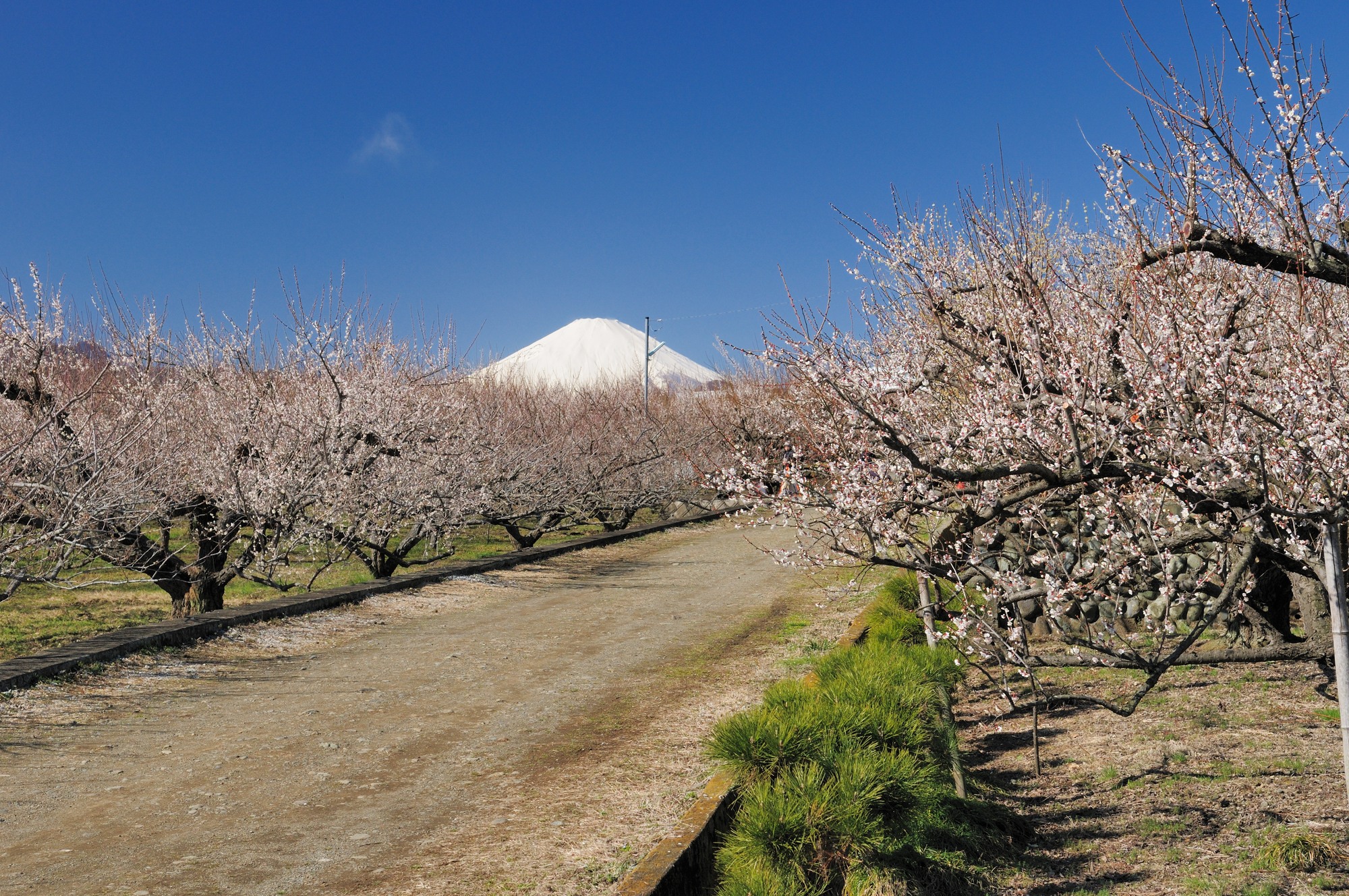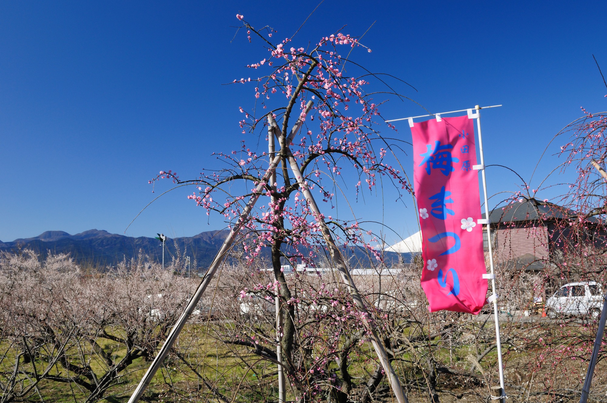 良く晴れた2月の休日,梅を見たくなり出かけました。WEBで調べたら富士山の近く,小田原に曽我梅林というのがあり,富士山をバックに見事な梅林があるというのを発見し,早速行ってみました。