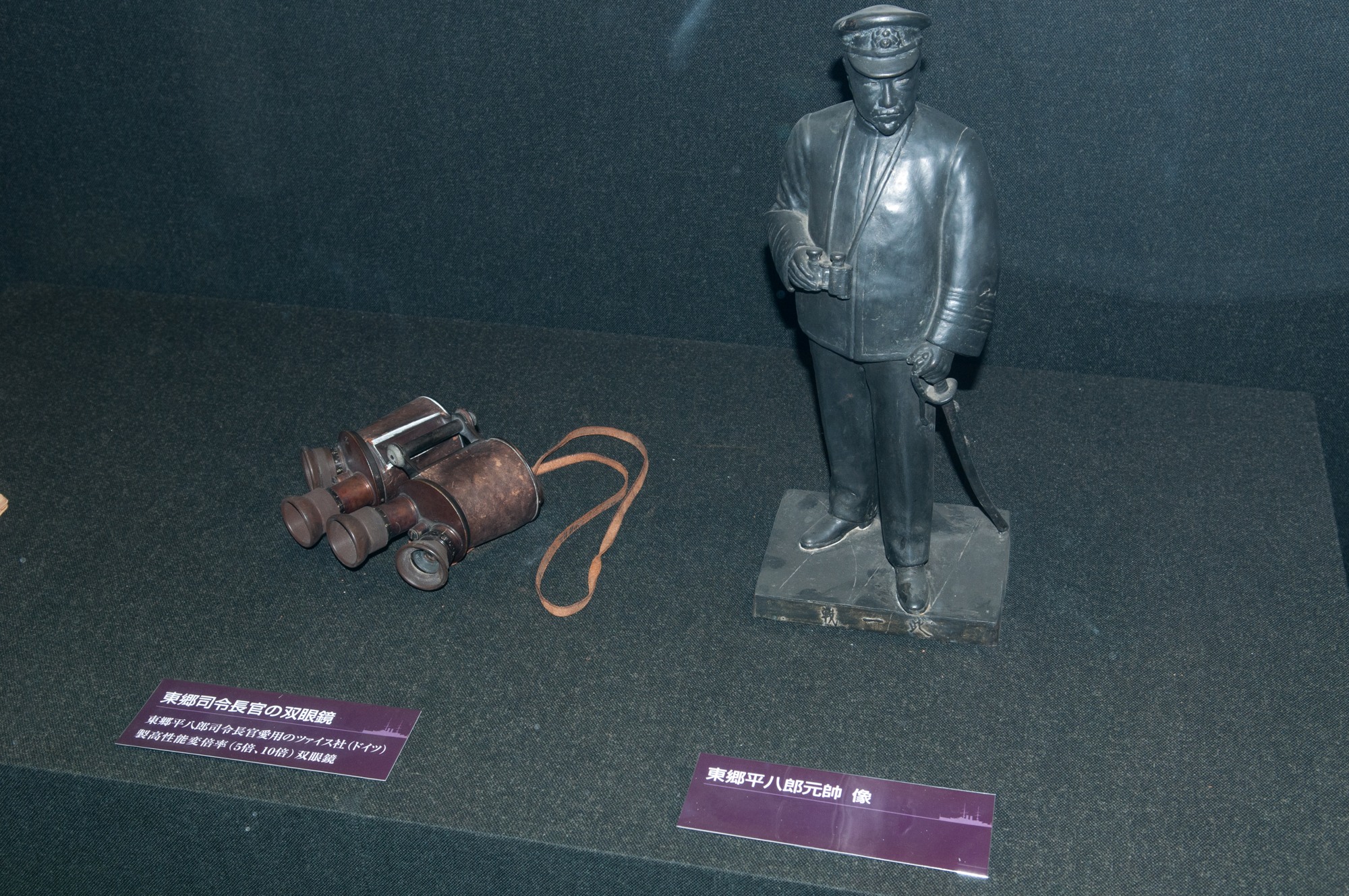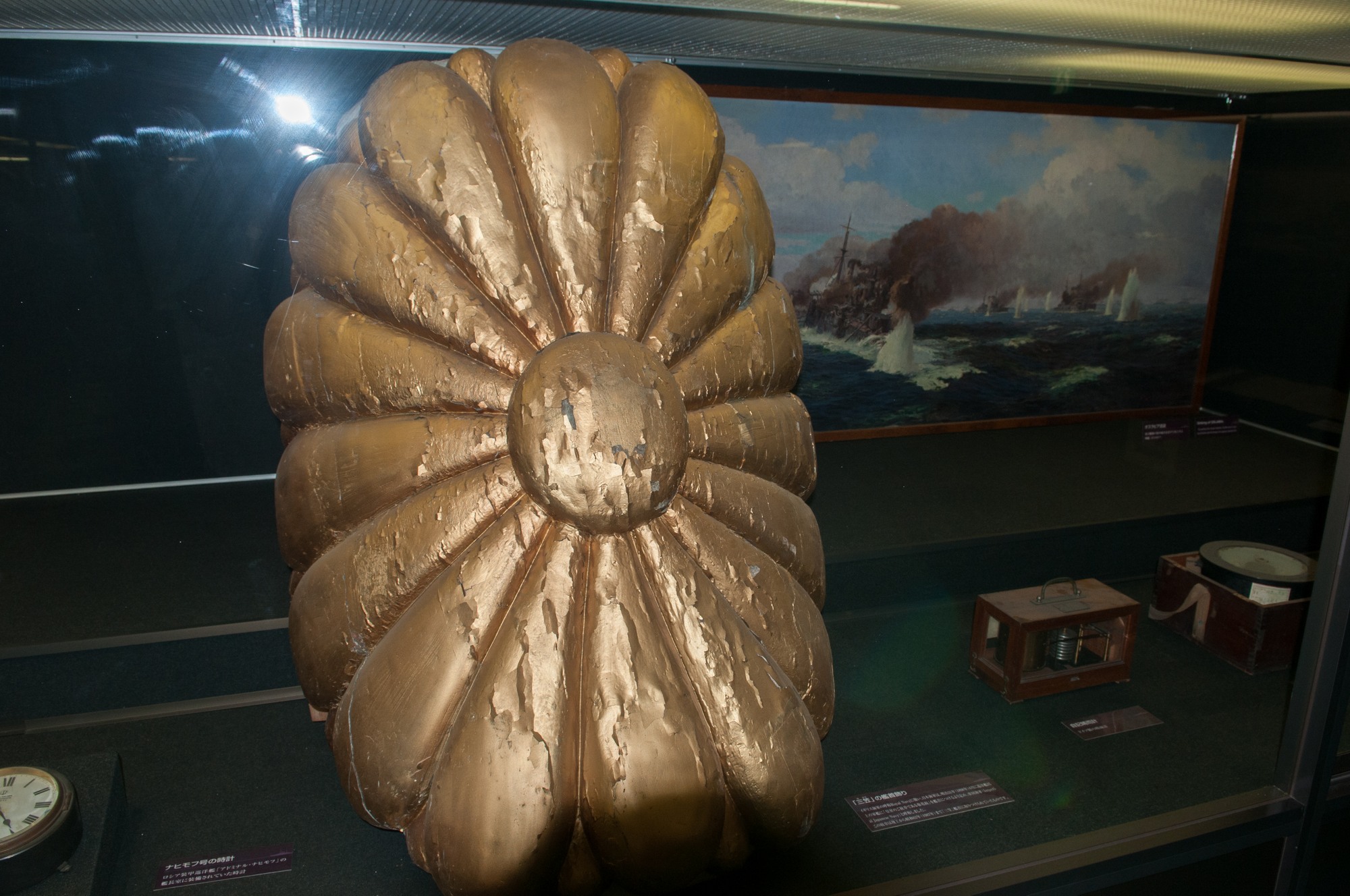 ここでの見ものは、①菊の御紋の三笠の艦首飾り ②統合司令長官が使った双眼鏡 ③日本海海戦直前の状況を書いた絵画 ④戦艦三笠の模型 です。1つ1つ見ると歴史を感じられ感動すること必至です。