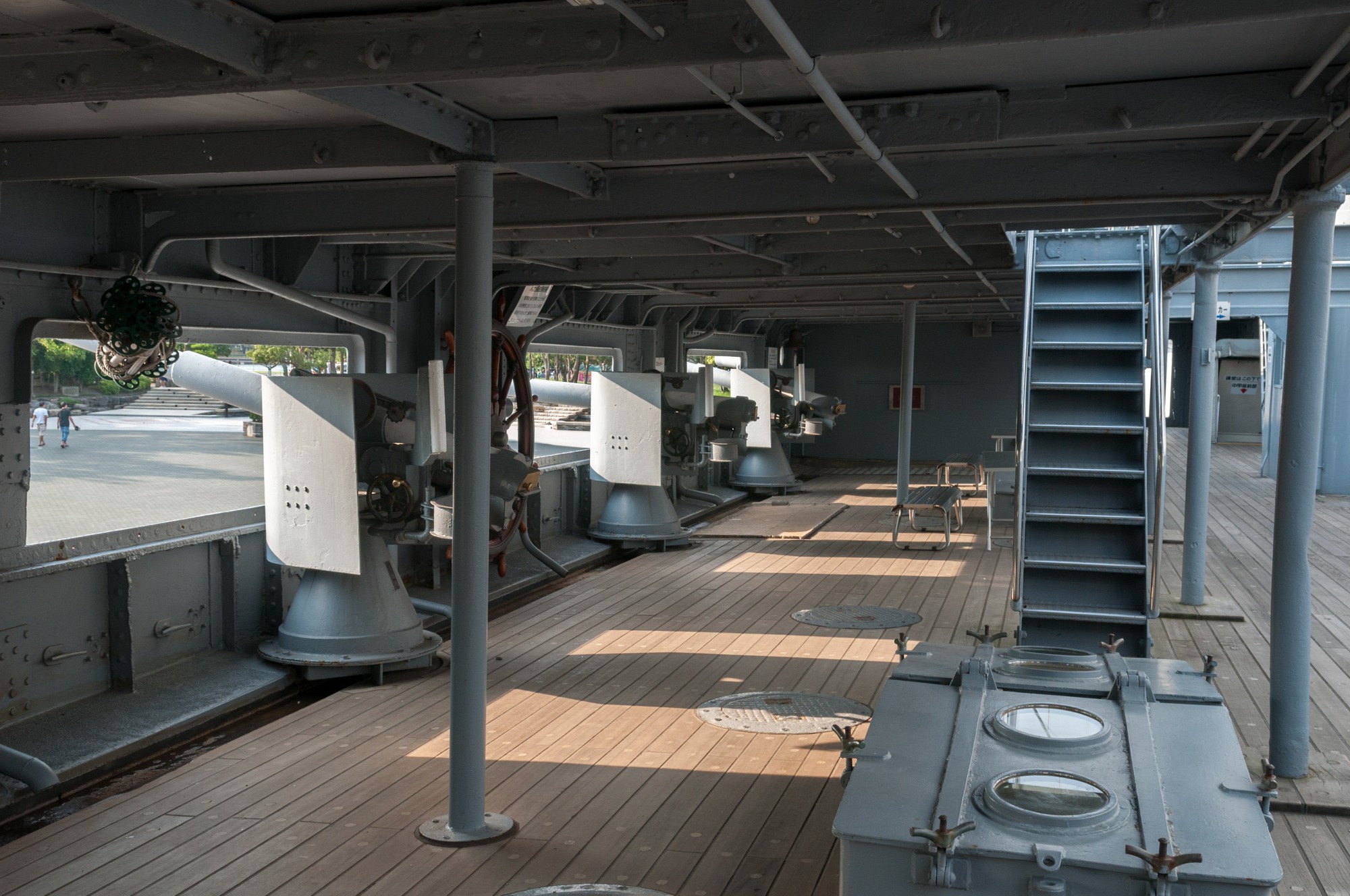 前方には口径30cmもある主砲があります。近くで見ると非常に迫力があります。日本海海戦の時にはここから何発も砲弾を打ってバルチック艦隊を打ち破ったのかと思うと、感慨深いものがあります。