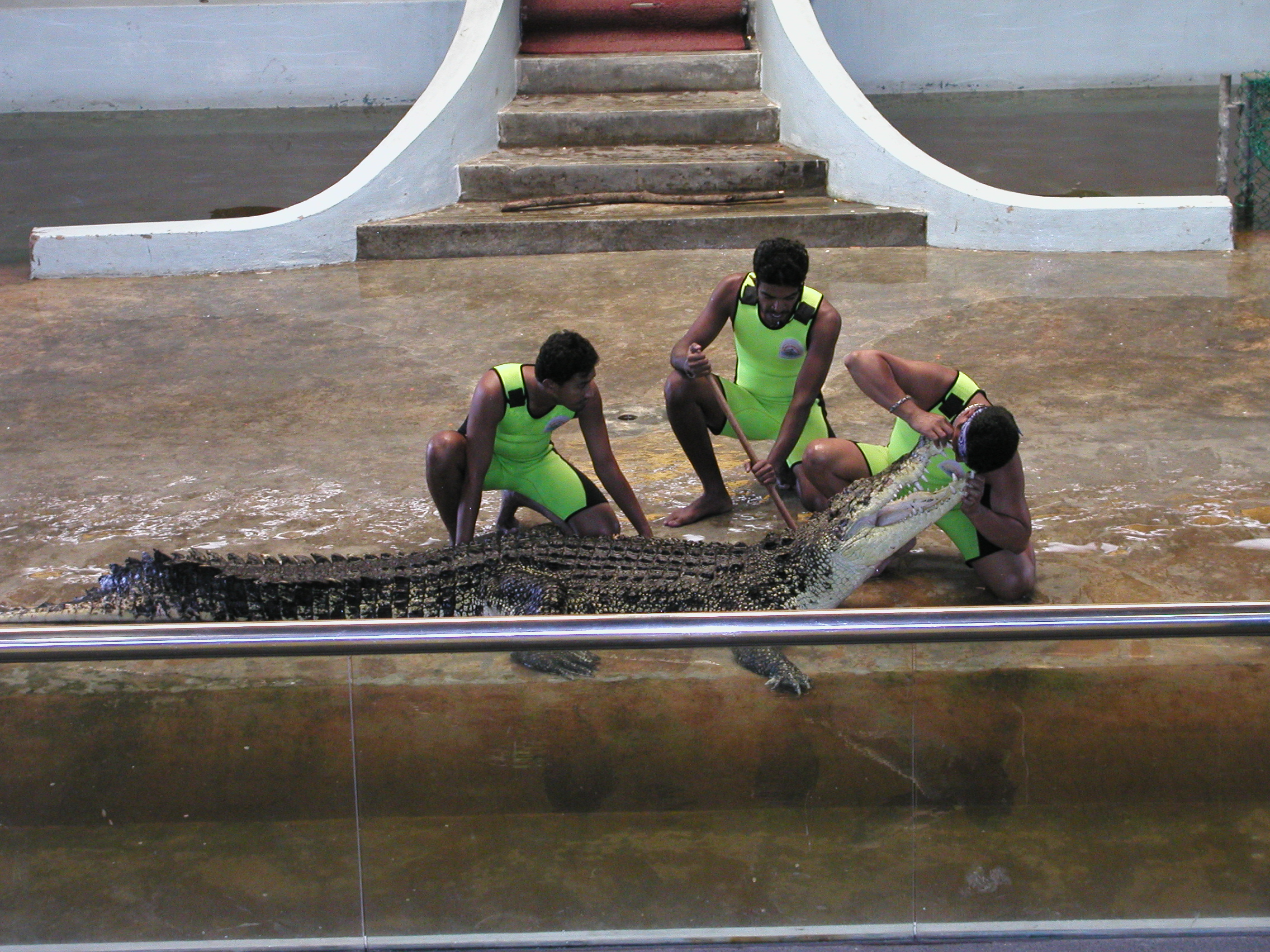 一番の見所は一日に2回やっている爬虫類ショーです。ワニの口をあけてそこに人間が頭を突っ込んだり、大蛇とキスしたり、本当にはらはらどきどきします。でもやはり事故はあるみたいで、以前ワニに頭をかまれて大怪我をしたショーマンもいたようだし、私の先輩はヘビに顔を噛まれて血だらけになったショーマンを見たらしいです。とにかくこれは一度は絶対に見たいものです。
