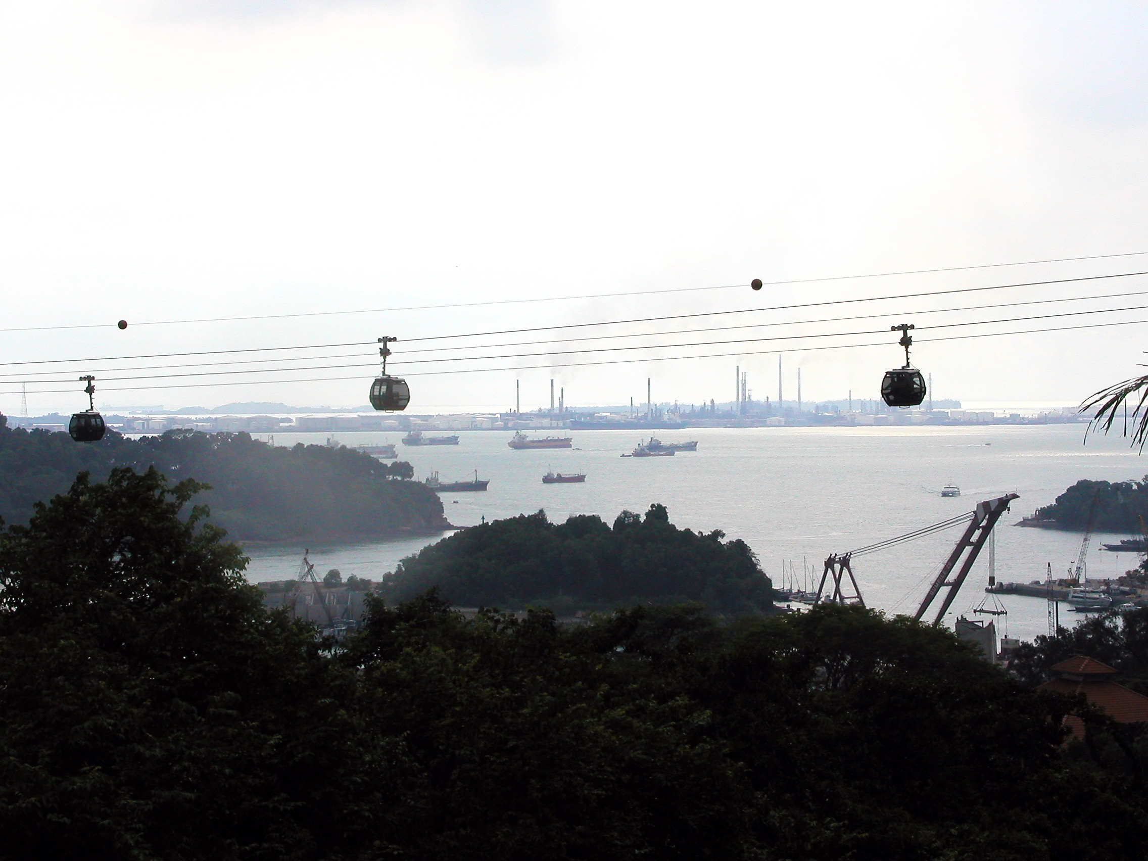 島の南には本島とロープウエイでつながっているセントーサ島、ここには海底水族館や当時の砦跡、ピンクのイルカと遊べる水辺、上まで登れるデカマーライオンがあります。夜はこのデカマーライオンをライトアップしたショーもやっているようですが、私はまだ見たことがありません。