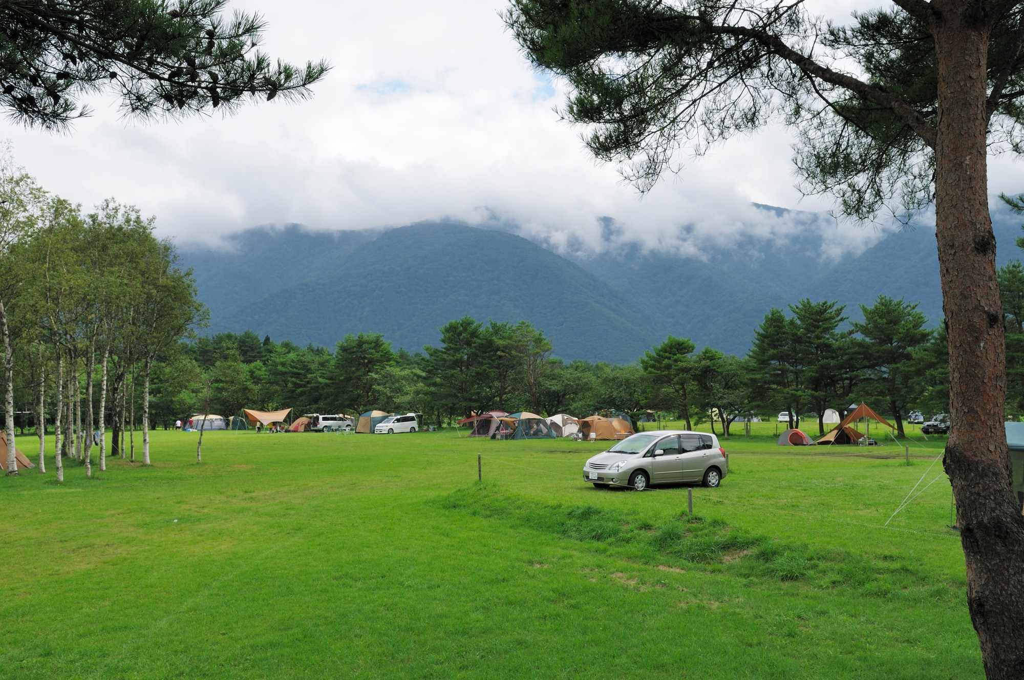 窓の外にはブナの木がある広い芝生となっており、そこには多くのキャンプ用テントが張ってありました。