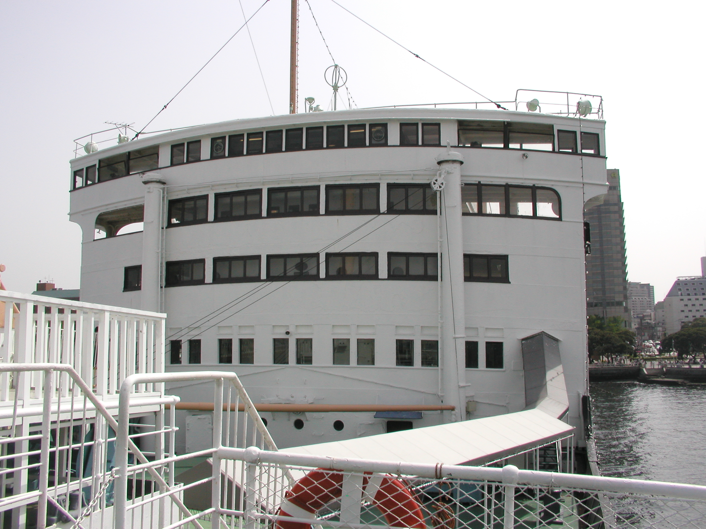 この氷川丸、近くで見ると意外に大きいことに気が付きます。それはそうですね、言われてみれば往年、太平洋を横断していた豪華客船なのですから、大きくて当たり前です。