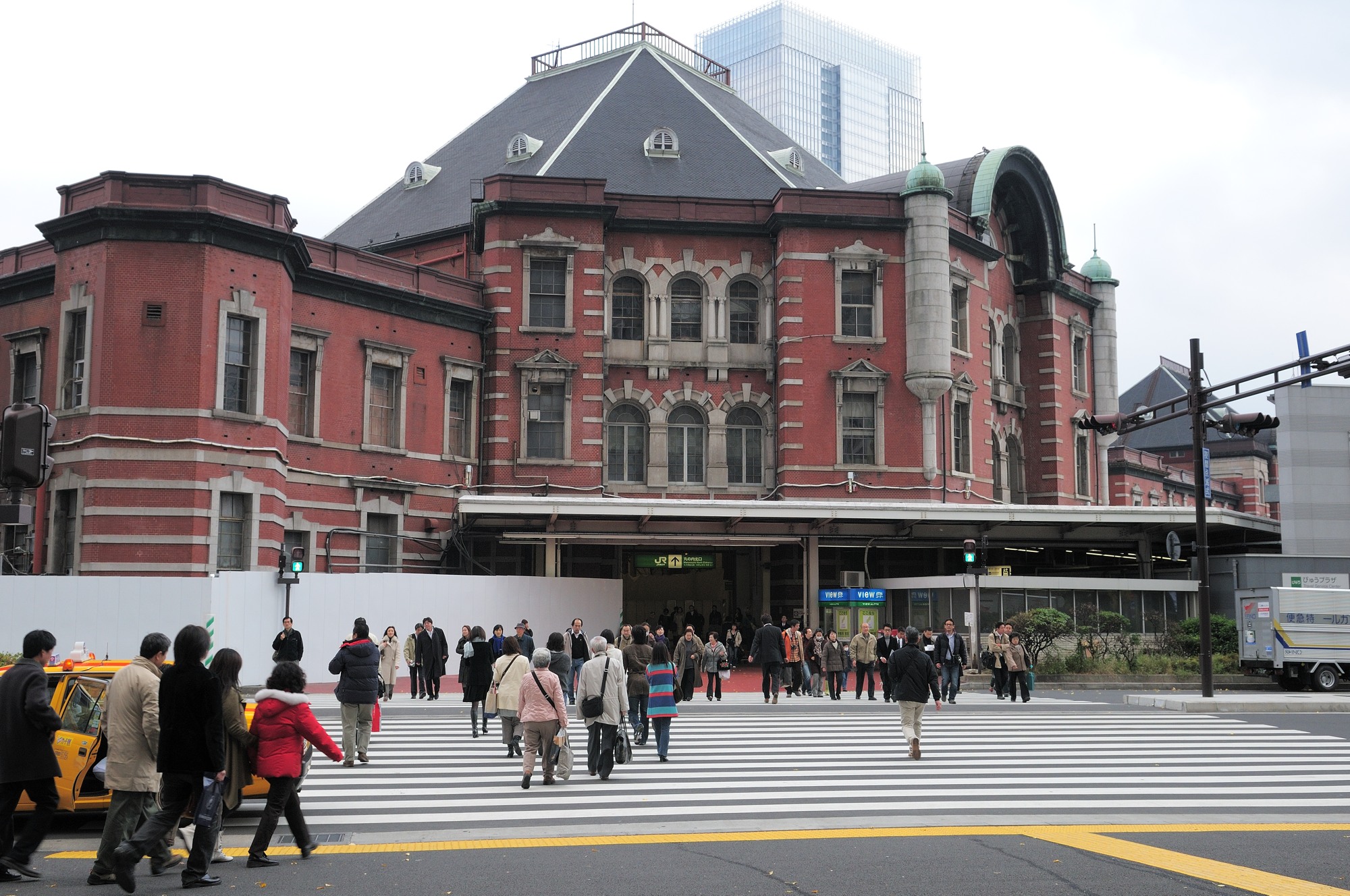まず見たのは,通勤時に使っている東京駅丸の内北口です。ここはニュースで東京駅の通勤風景でテレビによく映るお馴染みの場所です。休日ですが,結構人がいました。