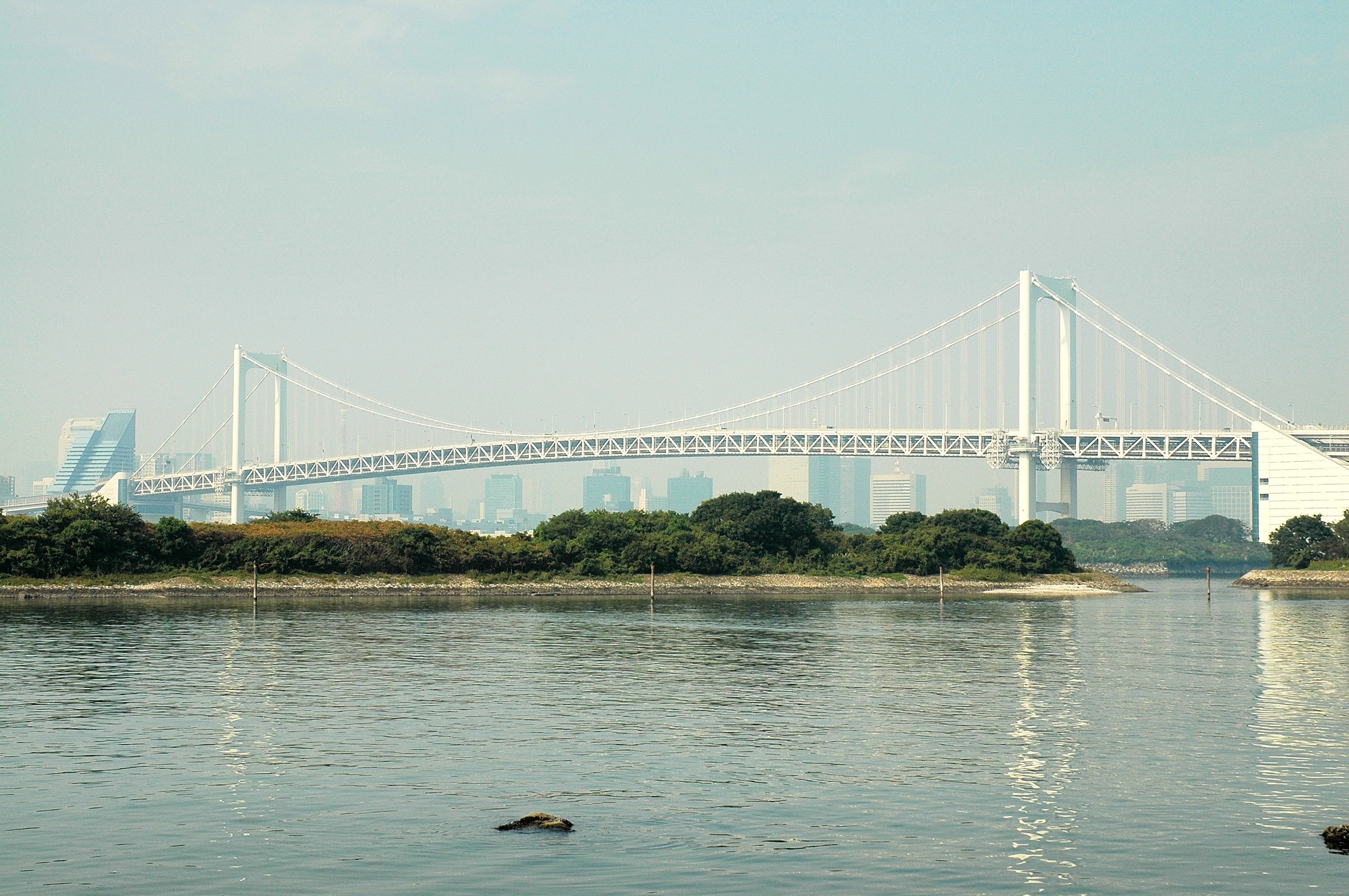 海に出てすぐ、前方にはレインボー・ブリッジが見えます。この橋は昼間見ても大きく綺麗で、ちょっぴり感動します。それを何枚か撮影し、次には公園周辺、海を通る観光船などを撮影してきました。